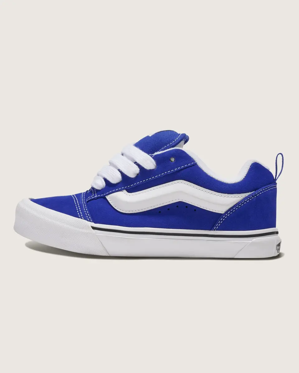 Née en 1998, la Knu Skool s’est inspirée de l’emblématique Old Skool pour créer quelque chose qui lui est entièrement propre. Cette version Big Kids réduit l’original, conservant la languette bouffante, les lacets épais et le col rembourré pour apporter ce look signature aux plus petites tailles.