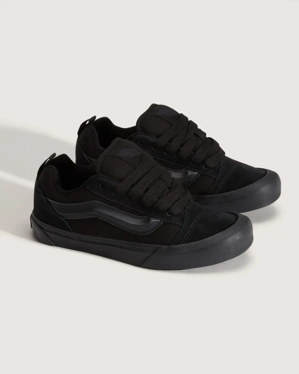 Née en 1998, la Knu Skool s’est inspirée de l’emblématique Old Skool pour créer quelque chose qui lui est entièrement propre. Cette version Big Kids réduit l’original, conservant la languette bouffante, les lacets épais et le col rembourré pour apporter ce look signature aux plus petites tailles.