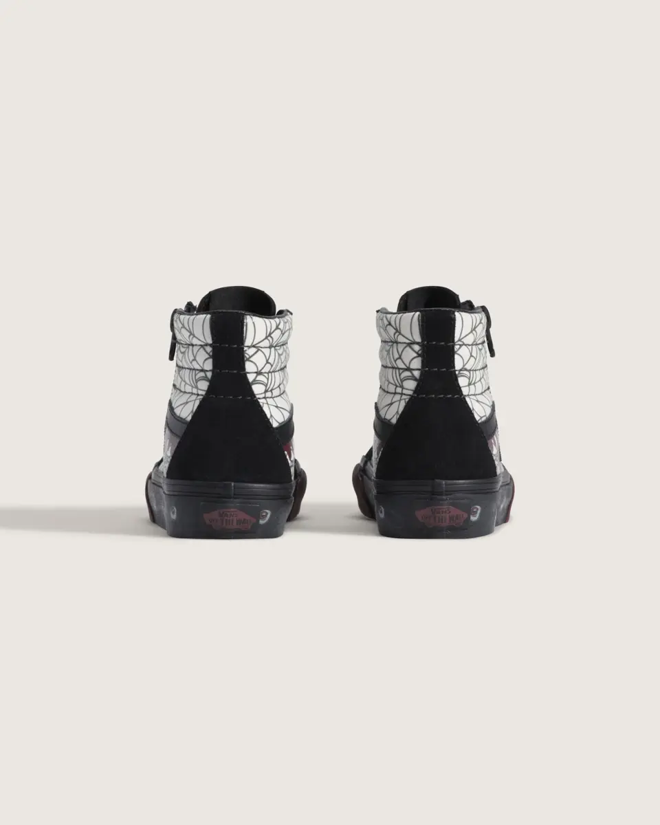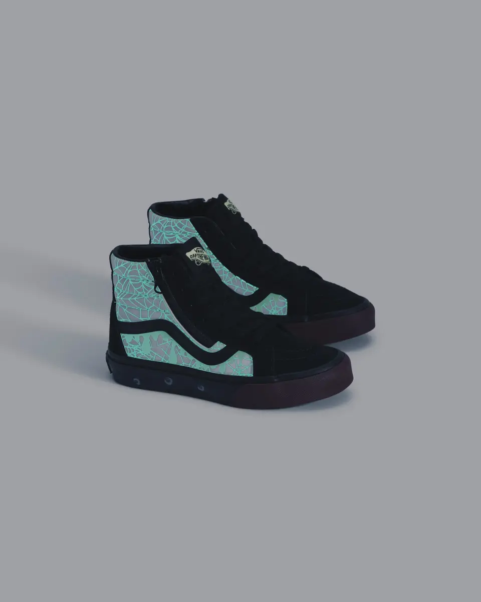 La chaussure d’Halloween Little Kids Sk8-Hi Side Zip apporte une ambiance de saison effrayante à un classique haut de gamme. Avec des toiles d’araignée phosphorescentes, des détails de gouttes de sang et des yeux qui observent depuis la semelle intermédiaire, celle-ci est faite pour faire tourner les têtes de jour comme de nuit.