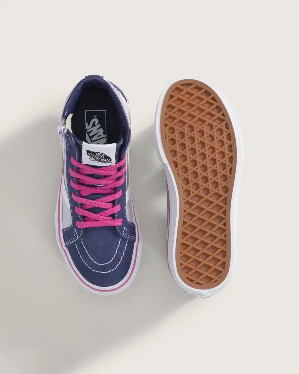 Découvrez dès aujourd’hui les chaussures Vans Sk8-Hi à fermeture éclair latérale pour enfants en bleu crépuscule profond / brume lilas. Achetez-les dès maintenant sur notre boutique officielle américaine. Livraison et retours gratuits.