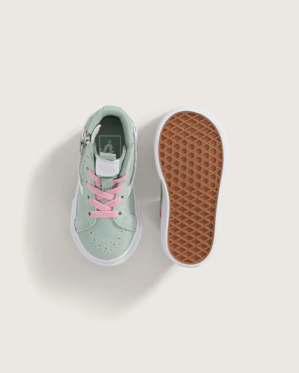 La Sk8-Hi Side Zip pour tout-petits redynamise notre légendaire chaussure montante Sidestripe avec une touche vintage et des fermetures éclair le long des œillets, offrant un accès et une polyvalence accrus à ce favori intemporel.