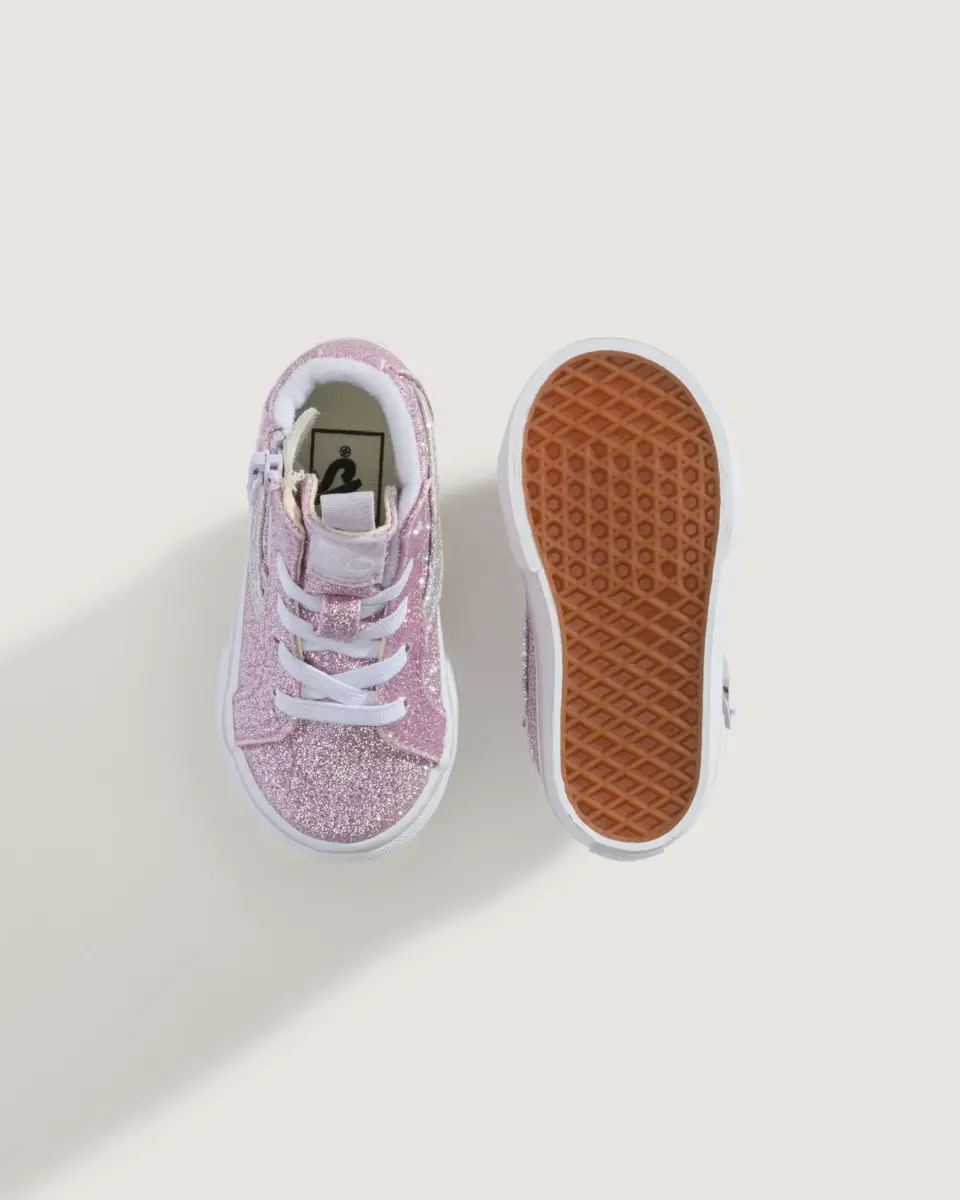 La Sk8-Hi Side Zip pour tout-petits redynamise notre légendaire chaussure montante Sidestripe avec une touche vintage et des fermetures éclair le long des œillets, offrant un accès et une polyvalence accrus à ce favori intemporel.