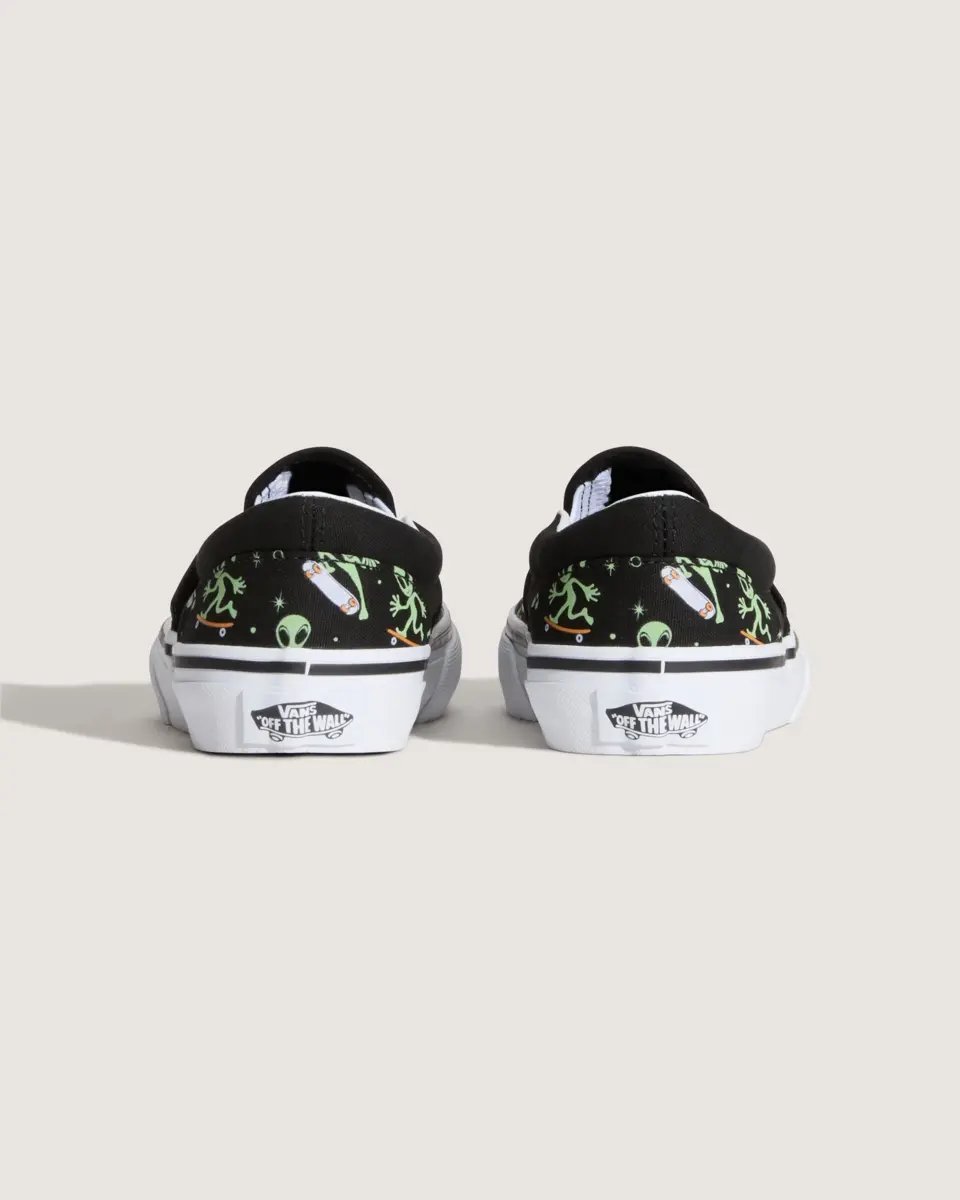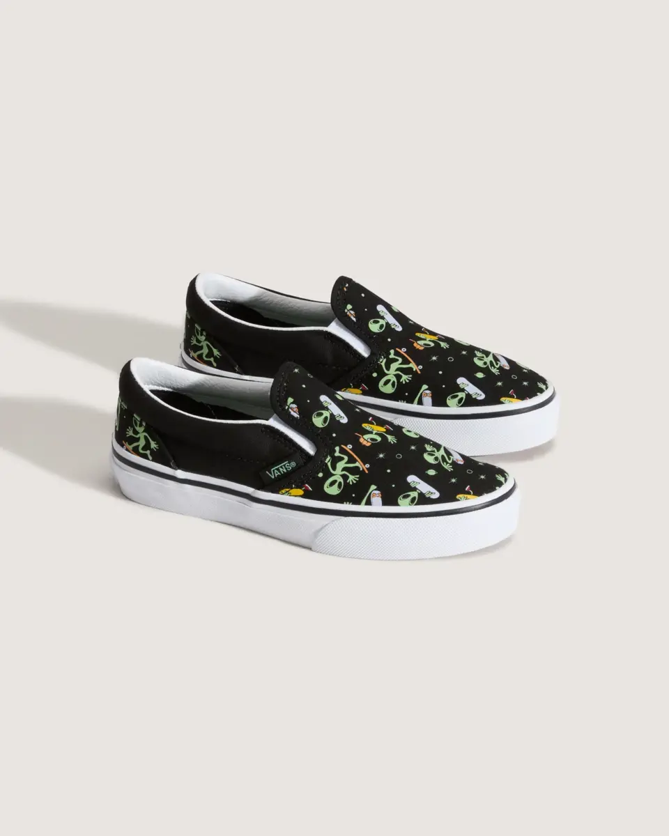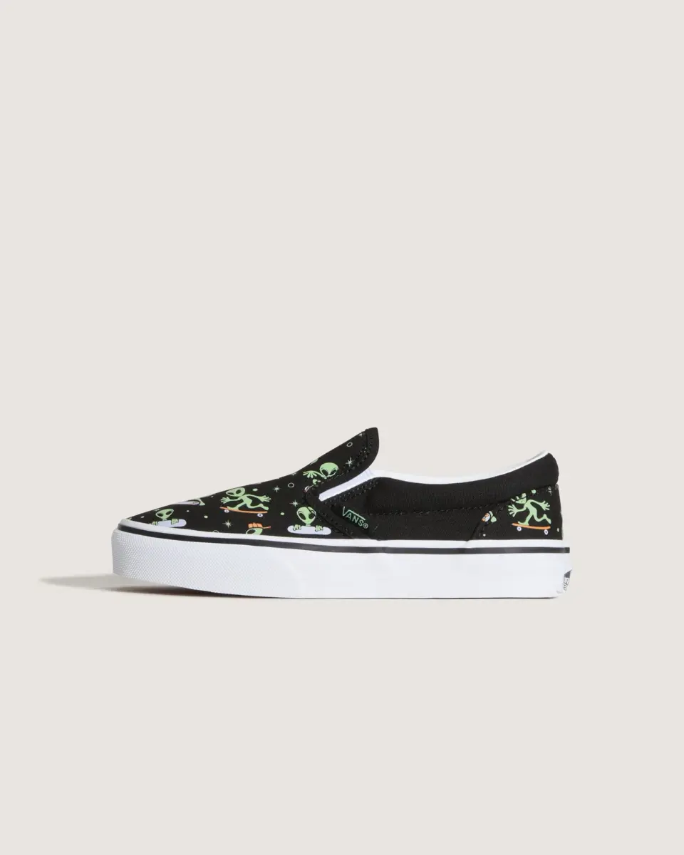 La Slip-On classique adopte une touche intergalactique avec un imprimé extraterrestre intégral qui brille dans le noir. Conçue pour les petits qui ne ralentissent jamais, ce modèle facile à enfiler offre confort, durabilité et une allure tout sauf ordinaire.
