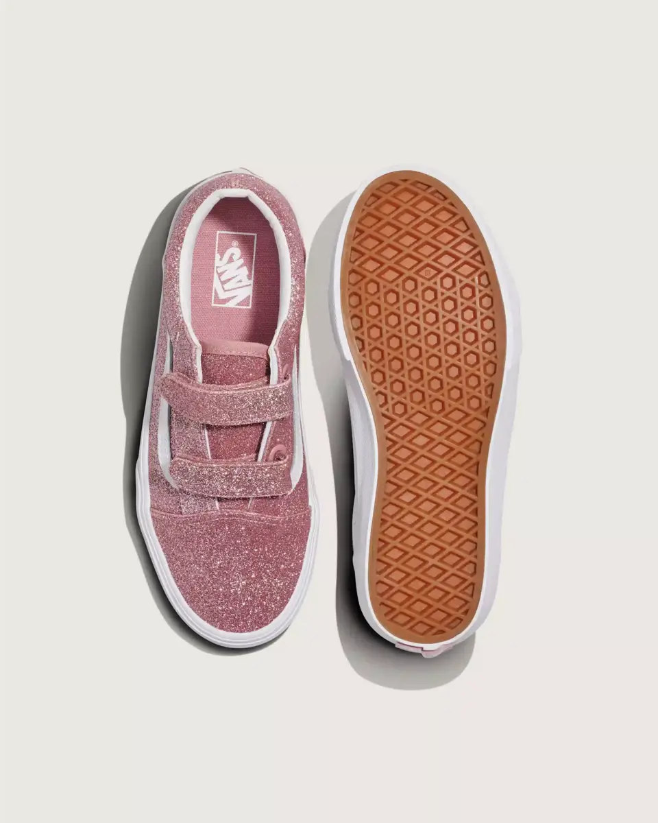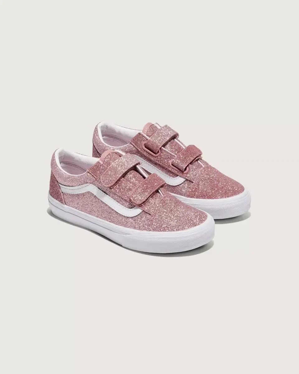 La Youth Old Skool V réinvente notre emblématique chaussure Sidestripe en remplaçant les lacets traditionnels par des fermetures à double crochet et boucle. Fabriqué avec une tige en daim et toile durable aux couleurs contrastées or rose pailleté, ce modèle bas conserve son charme classique tout en offrant un ajustement facile et sûr qui gardera vos pieds confortables toute la journée.