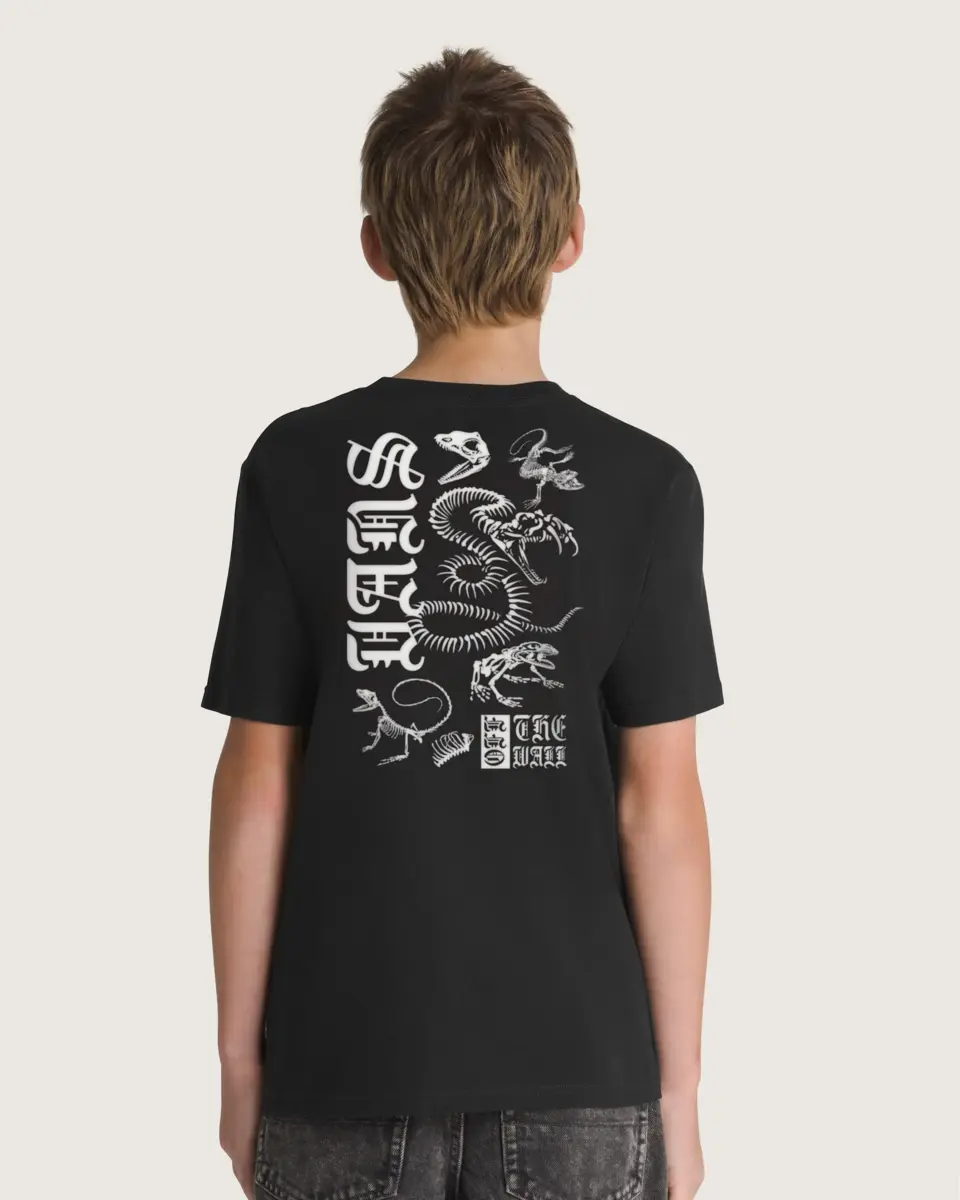 Le t-shirt Bone Yard pour enfant s’inspire de l’héritage du skate avec un imprimé inspiré des dinosaures. Ce t-shirt se démarque la nuit avec ses os de dinosaure phosphorescents et son imprimé Vans audacieux dans le dos.