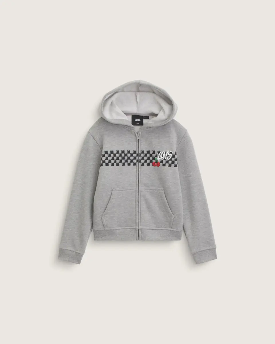 Le style historique de Vans prend une tournure douce avec le sweat à capuche Checker Cherries pour enfants, orné d’une sérigraphie durable de l’emblématique imprimé damier Vans sur la poitrine, rehaussé de cerises. Ce modèle simple est doté d’une poche kangourou à l’avant pour ranger vos affaires.
