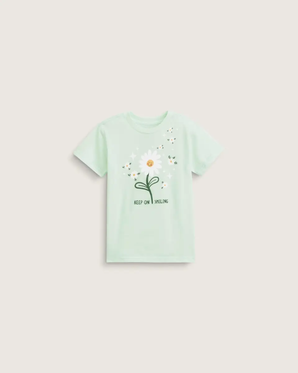 Offrez un sourire éclatant à vos enfants avec le t-shirt Fresh pour enfants, un t-shirt à manches courtes et col ras du cou. Fabriqué en fil cardé à anneaux pour un t-shirt plus doux et plus lisse, il est orné d’un motif phosphorescent représentant une marguerite souriante sur le devant.