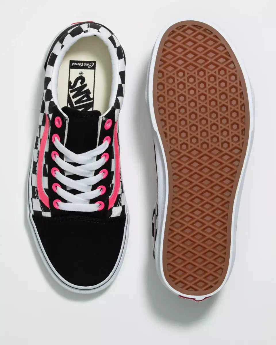 La Old Skool, première chaussure à arborer l’emblématique bande latérale en cuir et modèle incontournable pour tous les passionnés de skate, est un modèle bas à lacets fabriqué en toile résistante, avec des œillets métalliques, une languette et une doublure rembourrées et la semelle extérieure Waffle signature de Vans. Elle est désormais disponible sur Vans Customs, où chaque chaussure peut être personnalisée avec du cuir et du daim, différentes couleurs de lacets et d’œillets, des motifs exclusifs disponibles uniquement chez Customs, et la possibilité de télécharger vos créations ou photos depuis votre ordinateur ou votre smartphone.