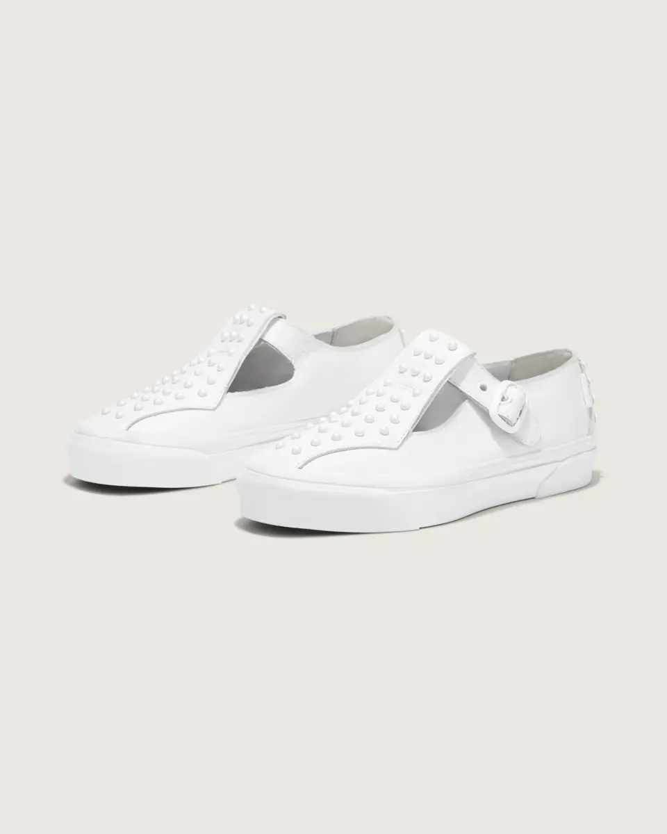 Style Mary Jane avec une finition nacrée luxueuse pour un look unique et accrocheur.