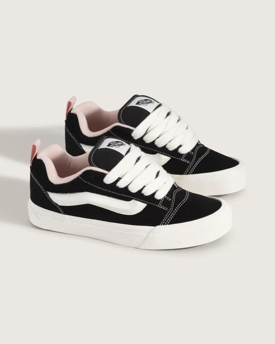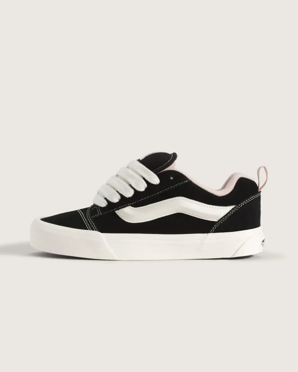 Née en 1998, la Knu Skool s’est inspirée de l’emblématique Old Skool pour créer quelque chose qui lui est entièrement propre. Des lacets surdimensionnés, une languette bouffante et un col moelleux reflétaient le style affirmé des années 90, le tout reposant sur la semelle vulcanisée emblématique de Vans.