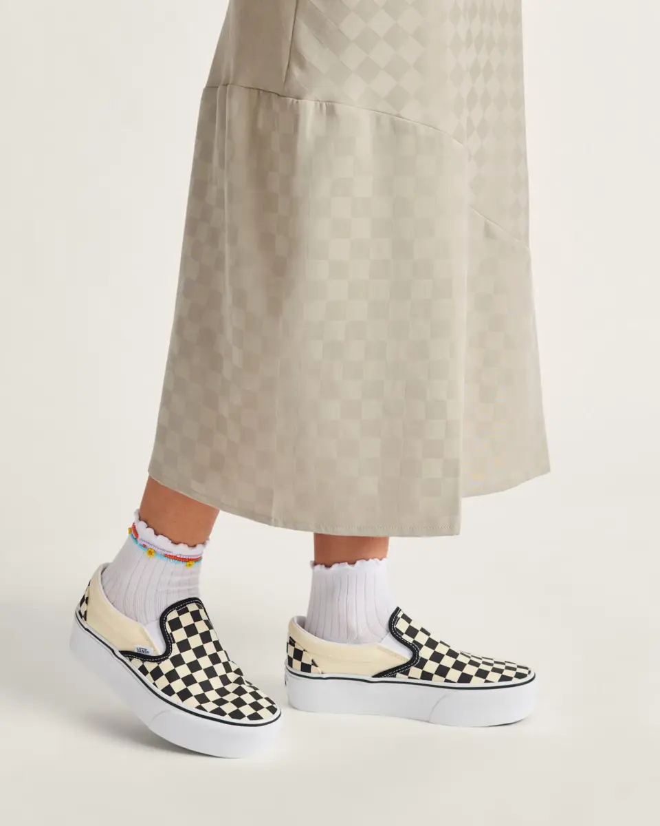 Le Classic Slip-On Stackform Checkerboard rafraîchit notre silhouette slip-on originale avec une version encore plus épaisse de l’esthétique de la plateforme. Dotée d’un flanc surdimensionné pour une hauteur doublée, cette chaussure à plateforme sublime un classique tout en apportant un nouveau style décalé à votre look.