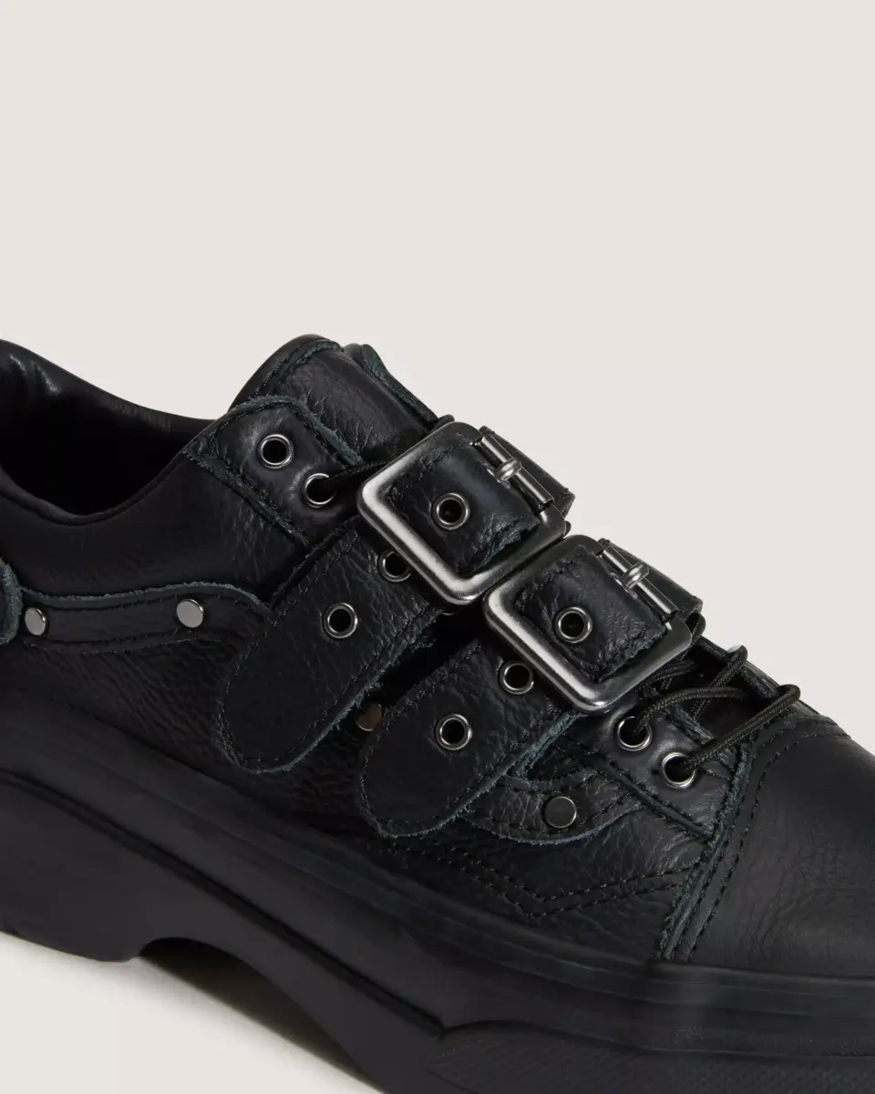 Que ce soit en skate ou sur les podiums, Efron brouille fièrement les frontières entre le skate classique et la haute couture. Pour la conception de sa Premium Old Skool, elle a apporté son esthétique à la fois féminine et punk pour une interprétation véritablement unique de cette silhouette emblématique. Comme Efron passe beaucoup de temps à skater en chaussures plates, elle a ajouté un talon à la semelle extérieure personnalisée et conçu la tige avec un cuir noir riche, des détails métalliques et un système de laçage corset. Voici la Old Skool comme vous ne l’avez jamais vue.