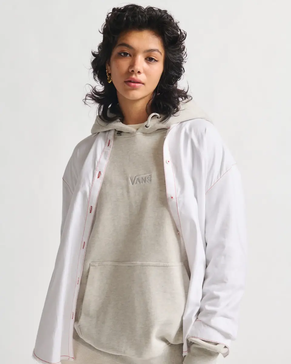 Incontournable de votre garde-robe avec une touche streetwear, la chemise boutonnée Gillian est une version moderne du style Oxford, devenu très populaire aux États-Unis dans les années 50. La version Vans® présente un ourlet brut et des surpiqûres contrastées, le tout dans une coupe ample et oversize.