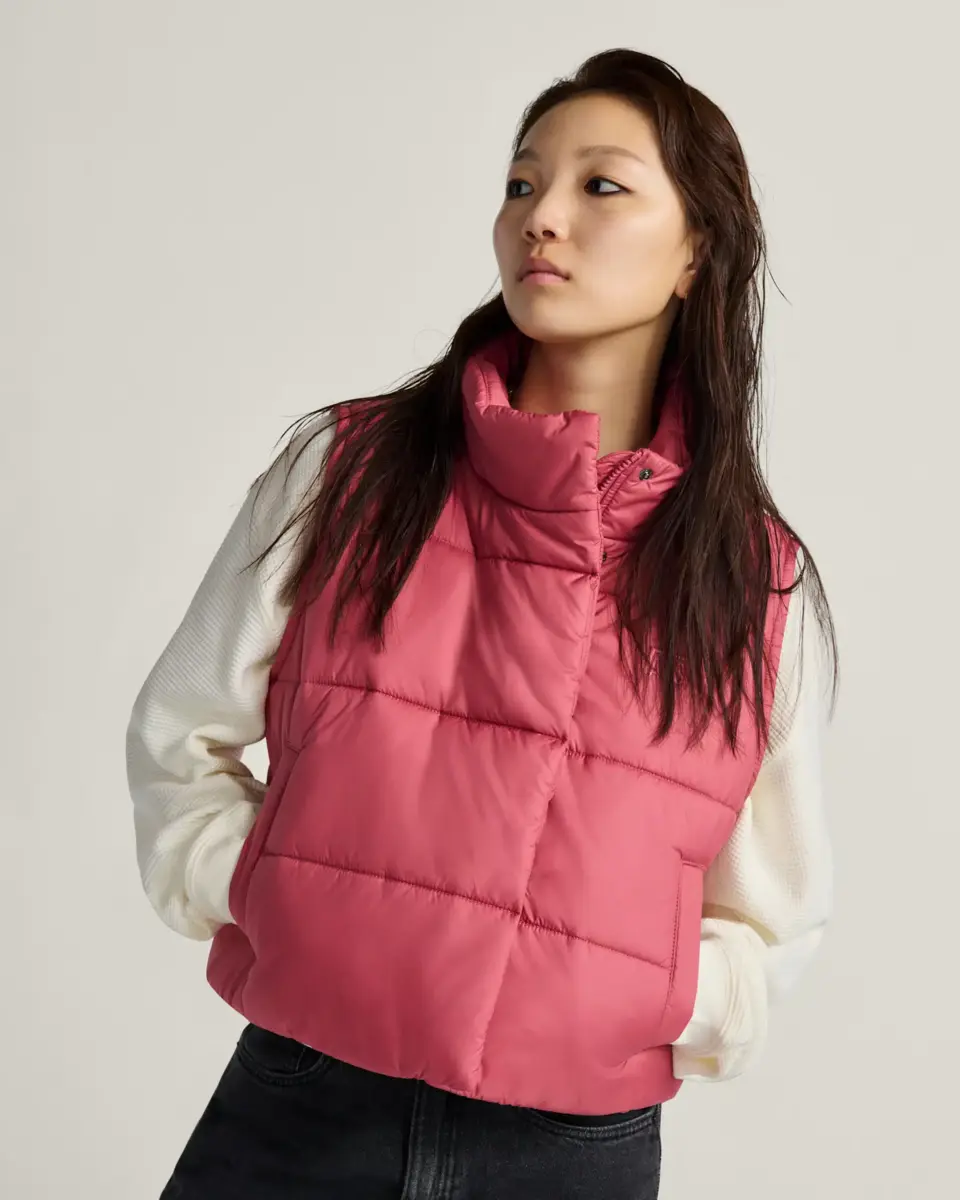 Affrontez le froid avec cette veste sans manches courte et chic, dotée d’un rembourrage en polyester dense pour vous garder au chaud.