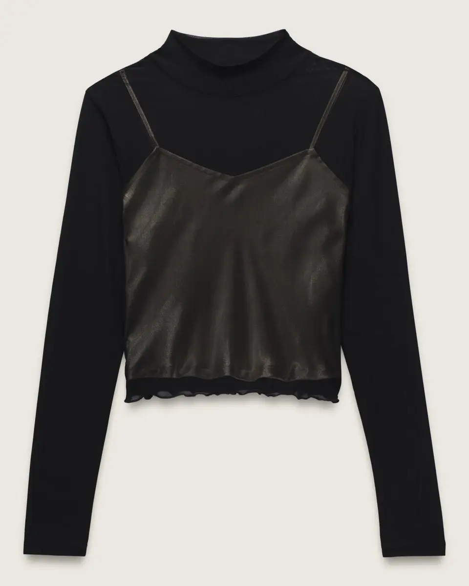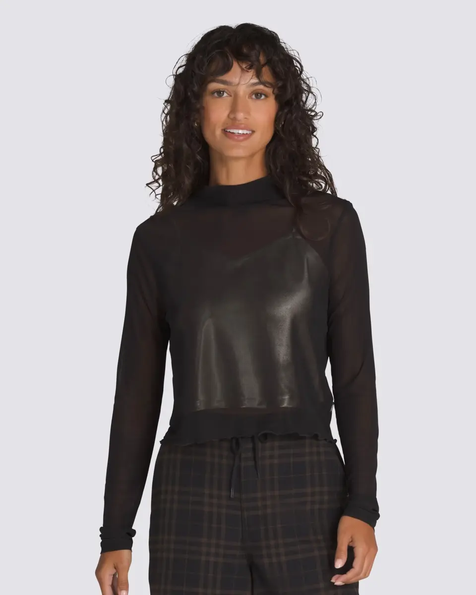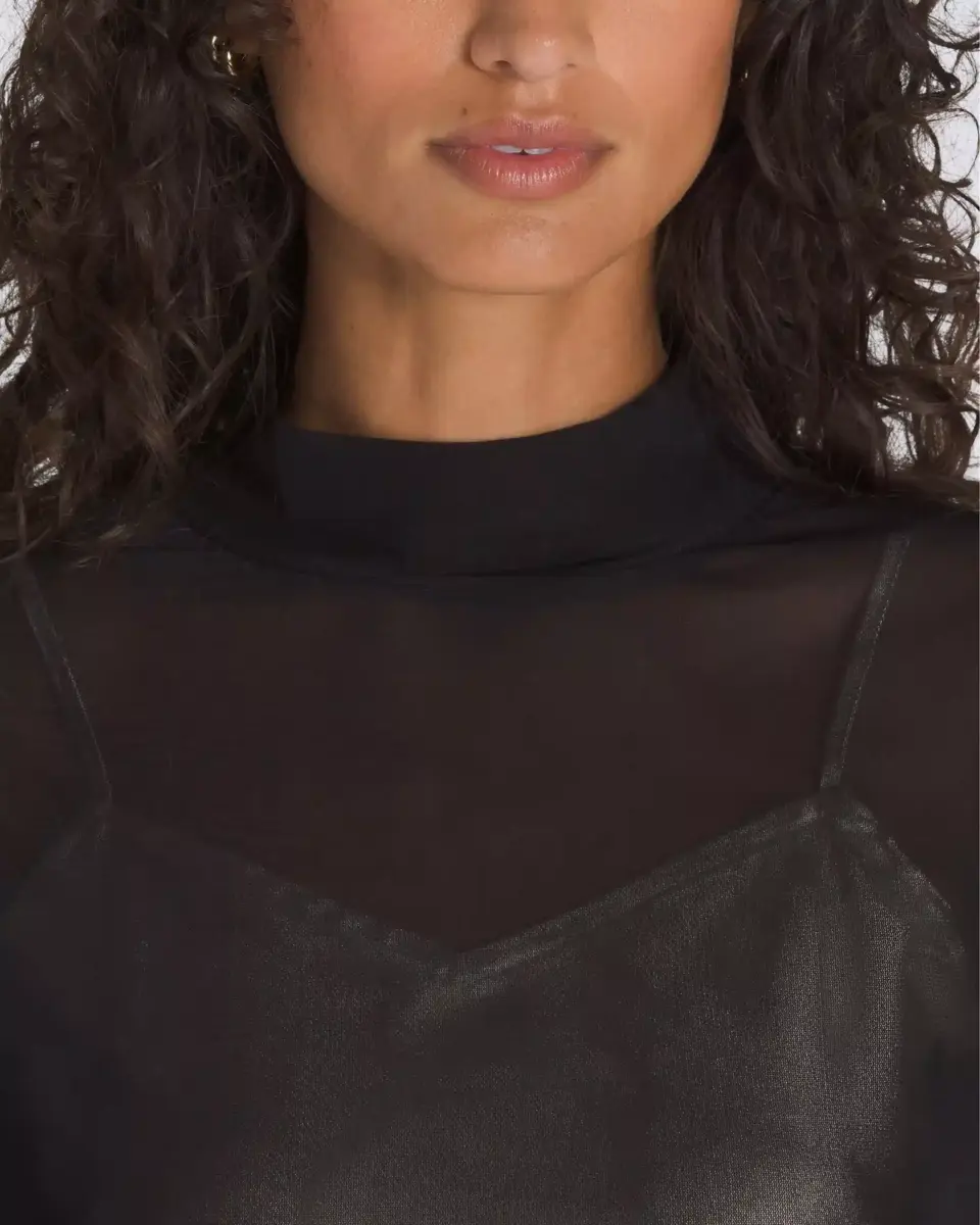 Faites passer votre style vestimentaire au niveau supérieur avec le haut à manches longues en satin mesh, un t-shirt élégant en mélange de polyester que vous pouvez habiller de manière plus habillée ou plus décontractée, selon votre humeur.