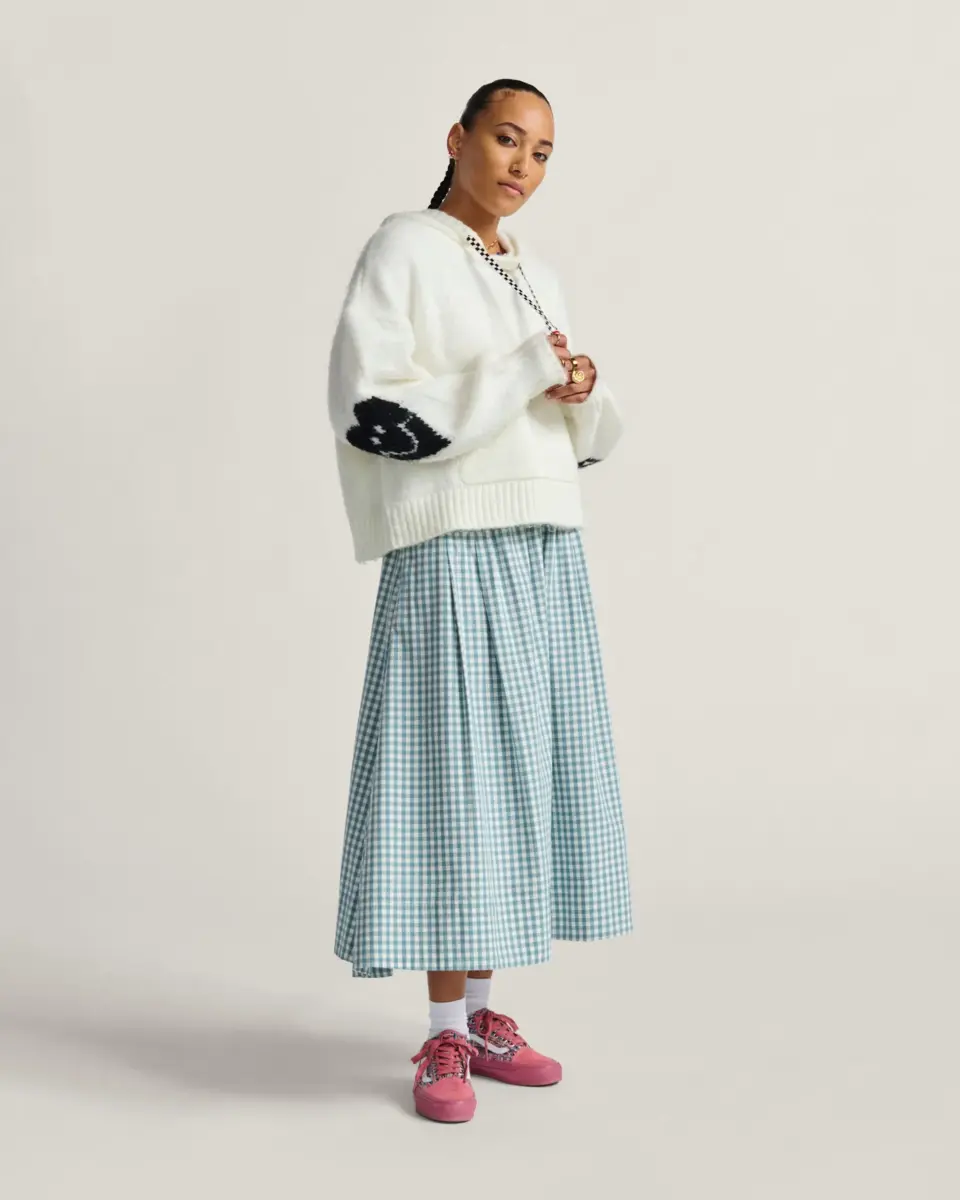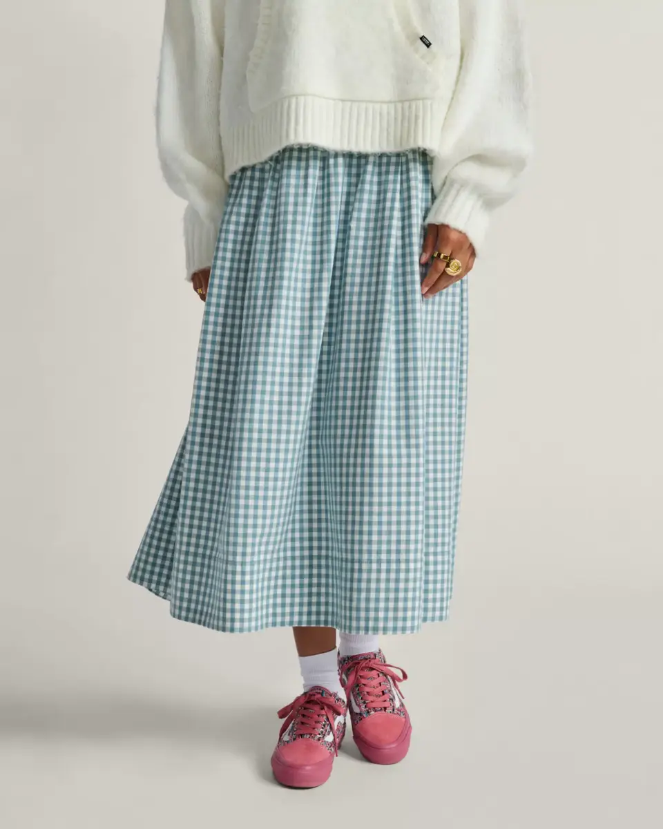 La jupe ample à carreaux Francesca est aussi à l’aise lors d’une fête printanière que dans la rue. Confectionnée en popeline de coton teintée en fil, elle est dotée d’une taille élastique et de fentes latérales pour plus de confort et de liberté de mouvement.