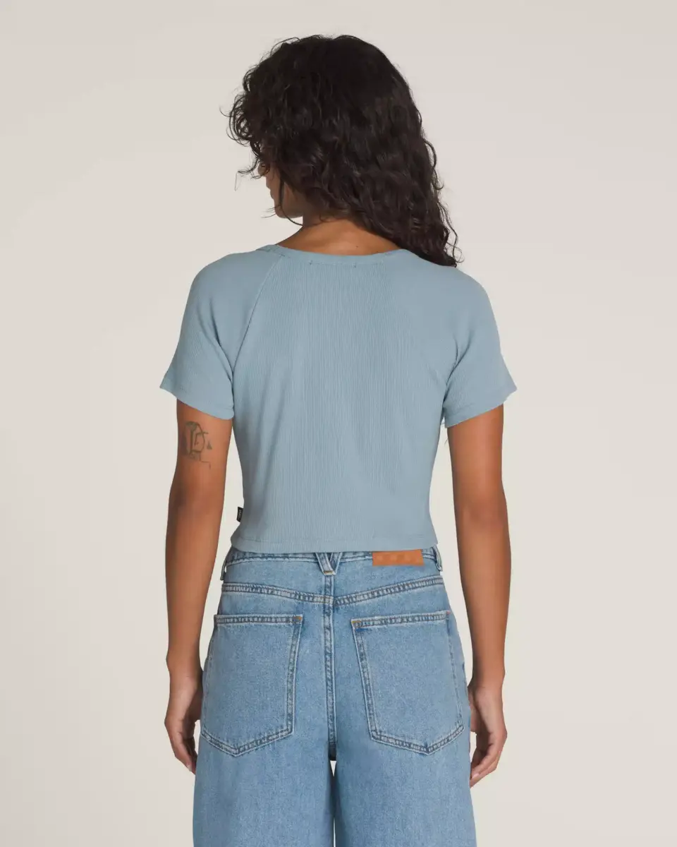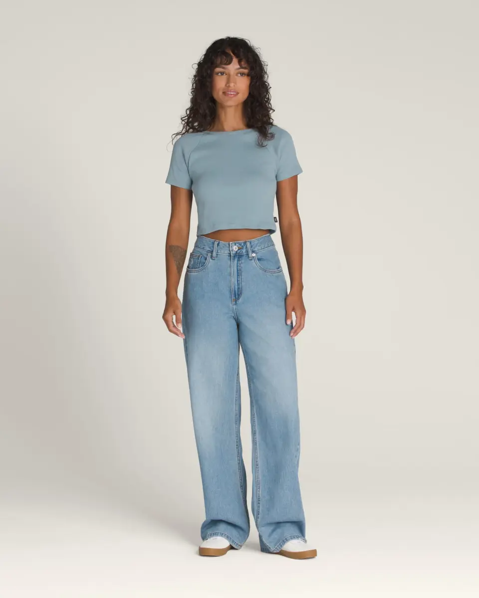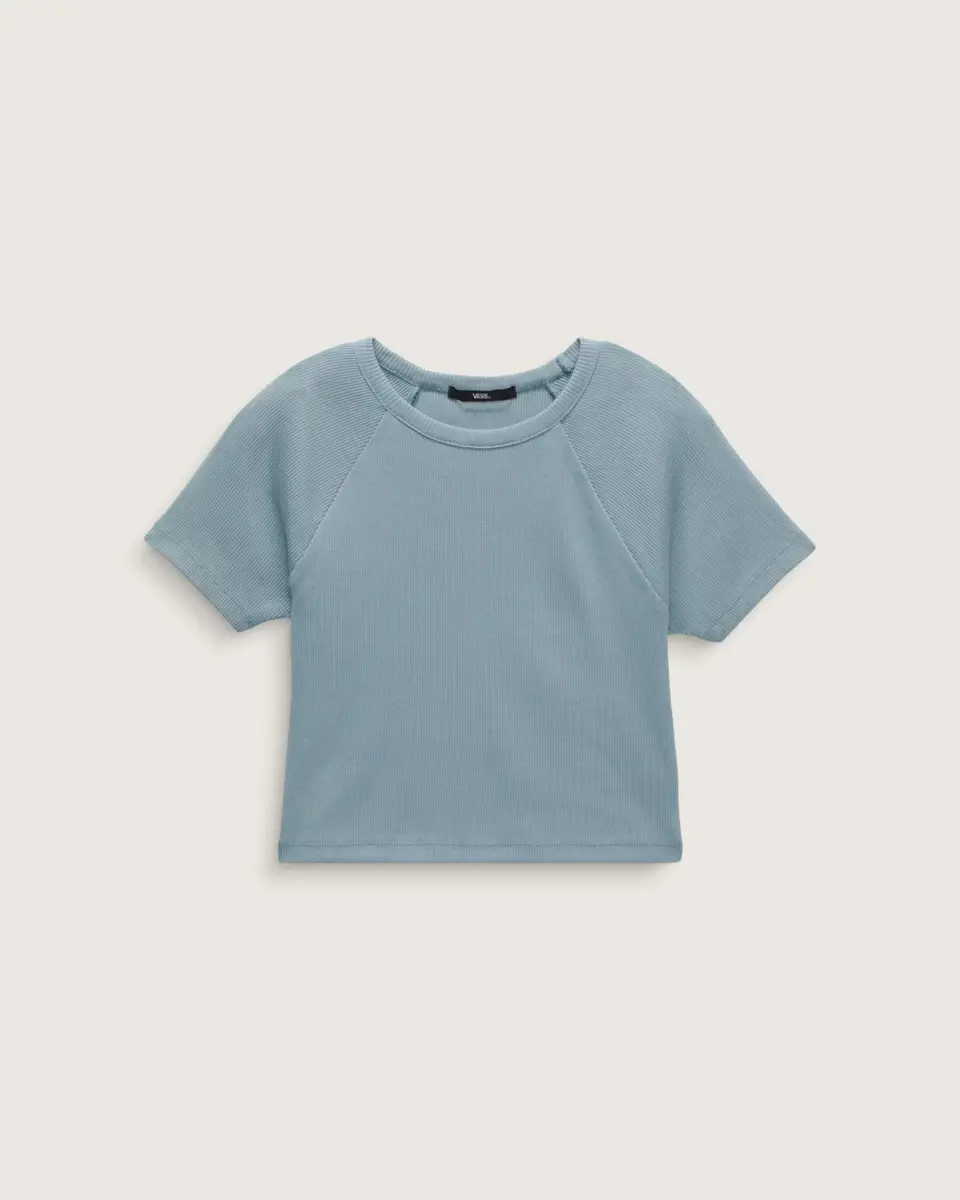 Inspirez-vous des années 90 avec le t-shirt Drew Baby, un t-shirt ajusté en maille côtelée passe-partout, plus long qu’un crop top, mais plus court qu’une coupe classique. Une étiquette drapeau Vans® à l’ourlet complète le style streetwear.