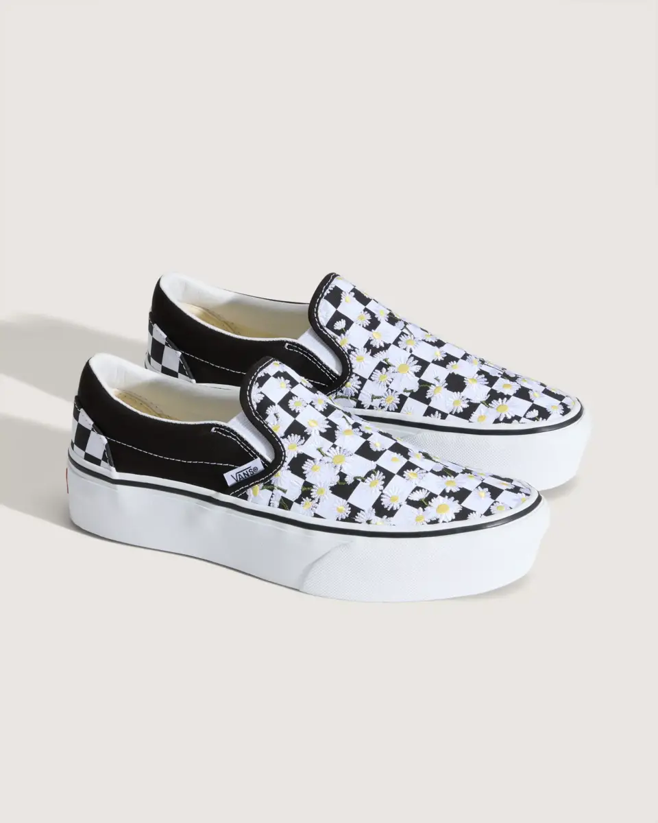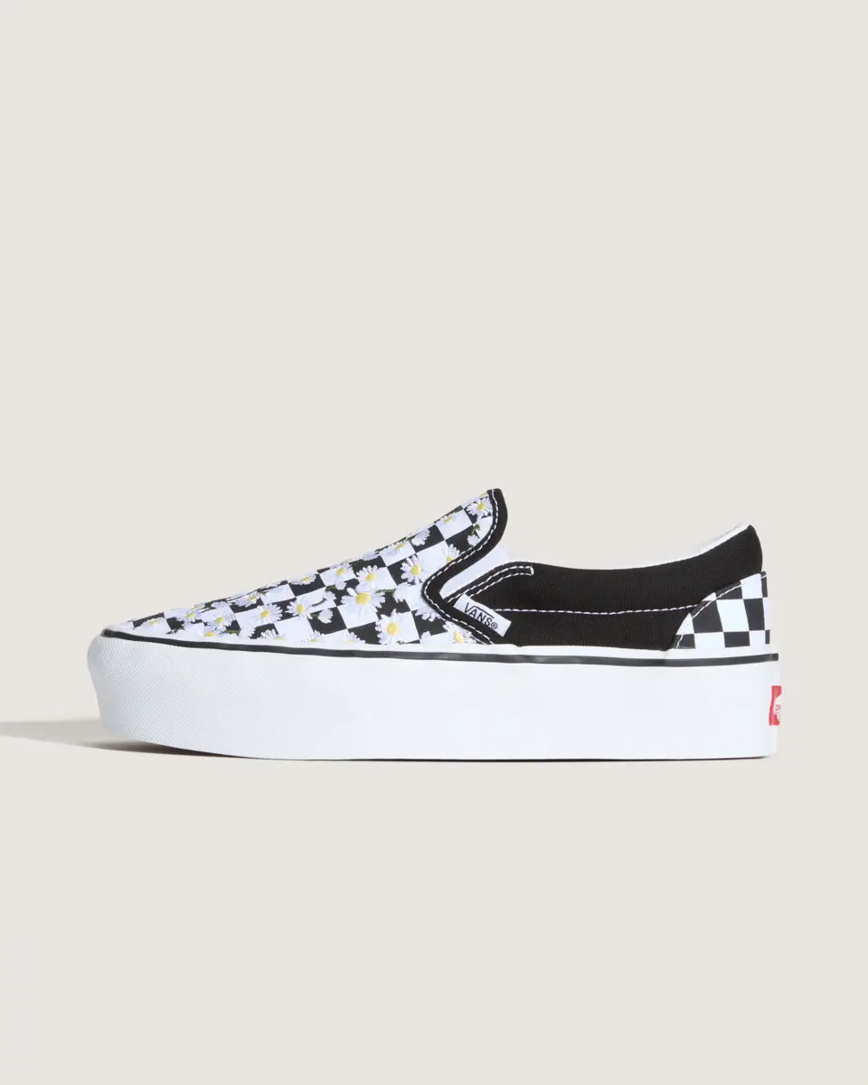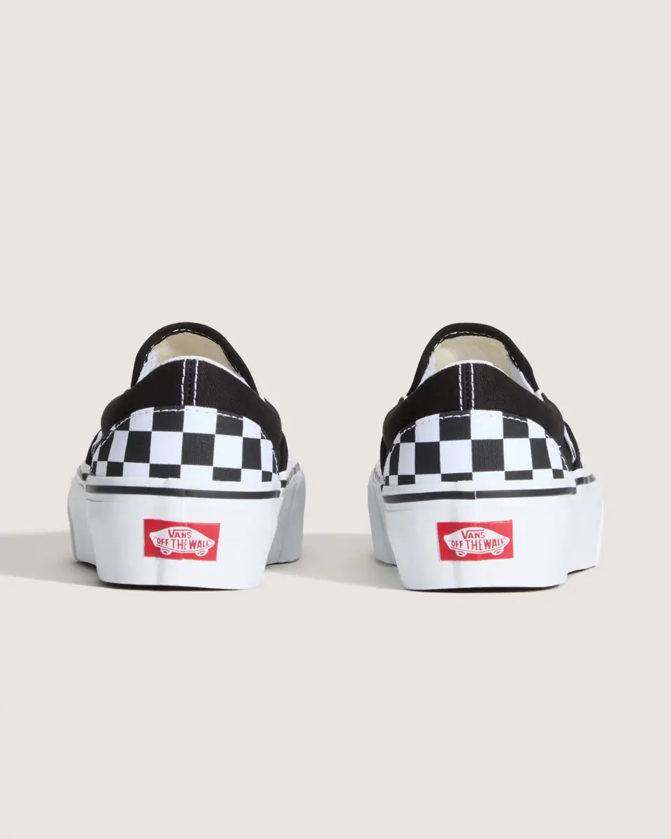 Le style emblématique Slip-On est légèrement rehaussé par une semelle plateforme et un double flanc.