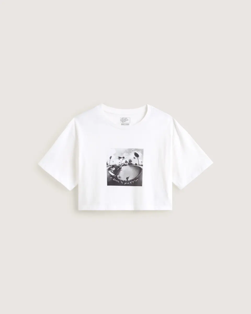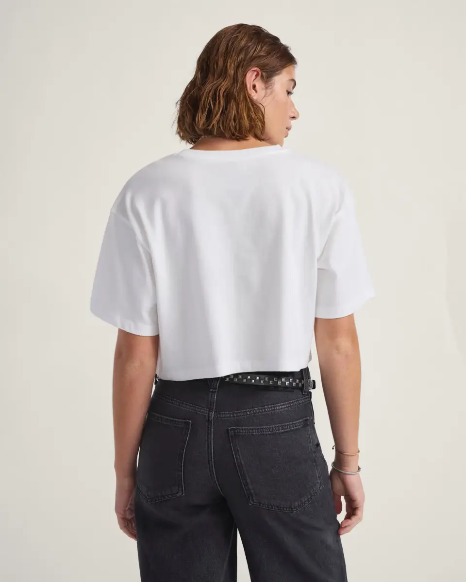Une silhouette plus courte et un style skate font de ce t-shirt court un incontournable.