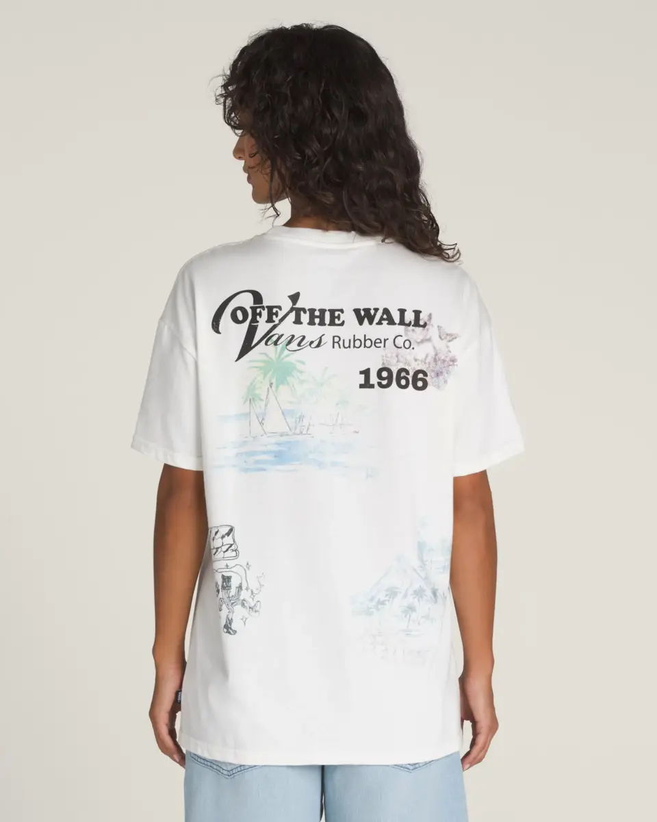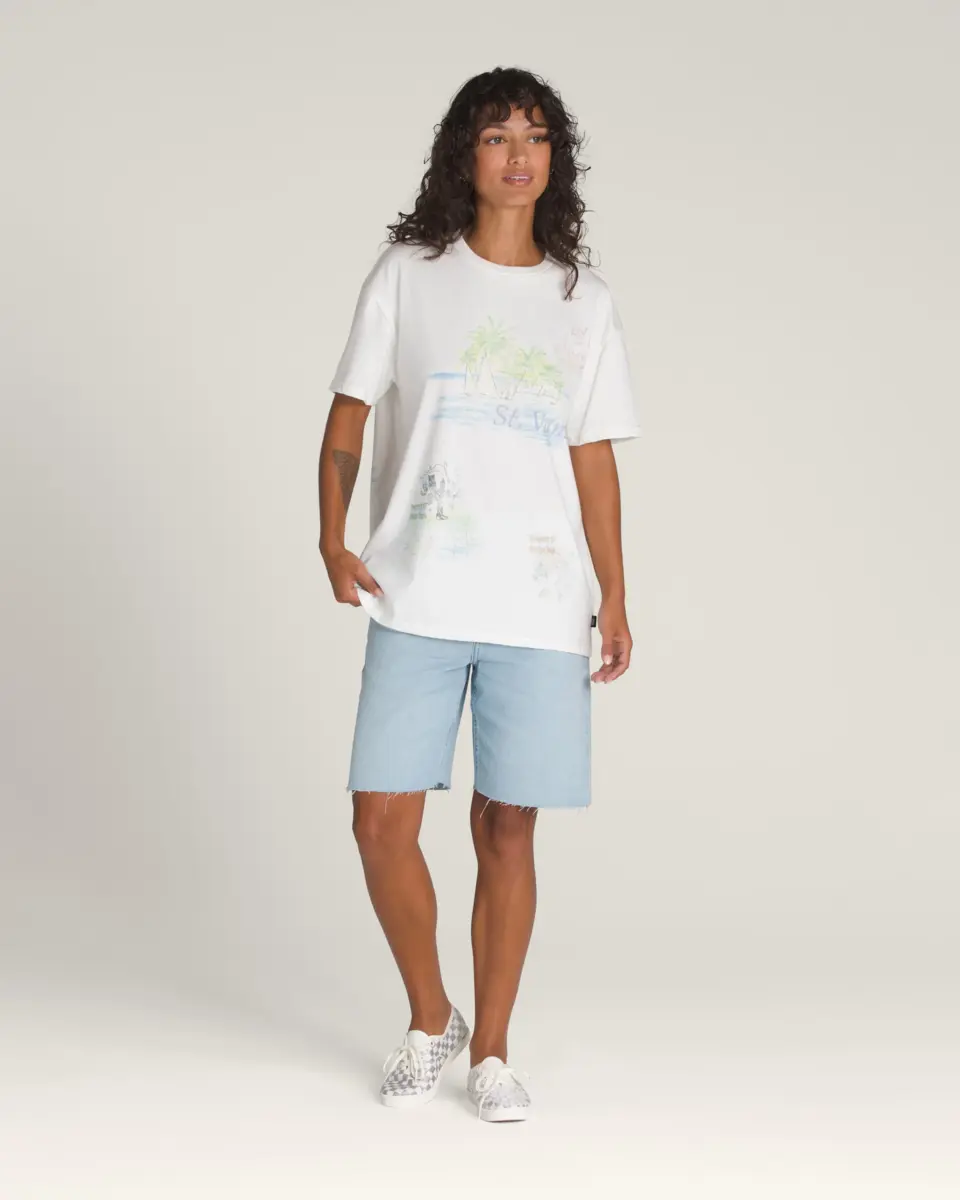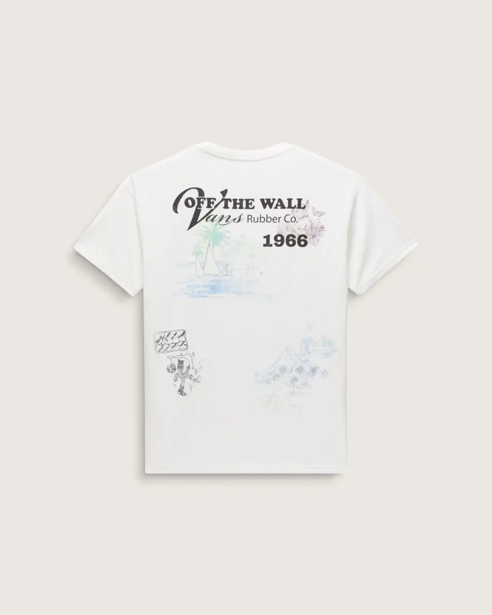 Adoptez un style rétro avec le t-shirt Vintage St. Vans, un t-shirt oversize à manches courtes et col ras du cou en jersey de coton épais. Il arbore un motif île sur le devant et des motifs Vans® supplémentaires au dos.