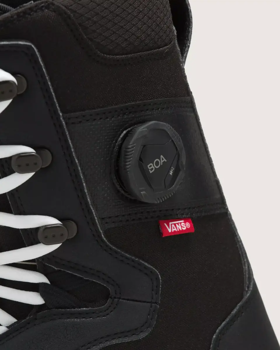 - Le système d’ajustement BOA® avec guide de glissement personnalisé Vans Hybrid associe le laçage traditionnel à la puissance du système d’ajustement BOA au niveau du cou-de-pied et au contrôle de flexion réglable du guide de glissement personnalisé pour un maintien sûr et ciblé du talon et un ajustement personnalisé.