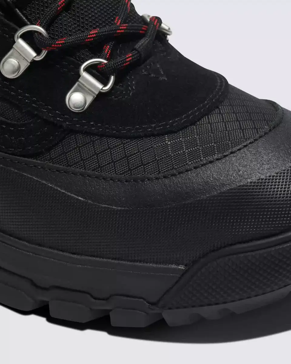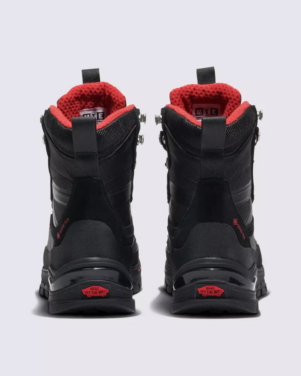 La botte MTE Snow-Kicker GORE-TEX se situe à la croisée des chemins entre les chaussures MTE de tous les jours et les bottes de neige d’hiver. Ce monstre de la neige allie style toutes saisons, imperméabilité GORE-TEX et isolation Duratherm 200 grammes GORE-TEX, pour que vous restiez bien au sec et au chaud. Ajoutez à cela une languette à soufflet montant jusqu’à la cheville pour empêcher la neige de pénétrer et un garde-boue en caoutchouc moleté double couche, et vous obtenez la botte Vans la plus adaptée aux aventures hivernales, qui vous protégera des éléments. Français : Il est fabriqué avec des tiges en cuir, en textile et en synthétique.