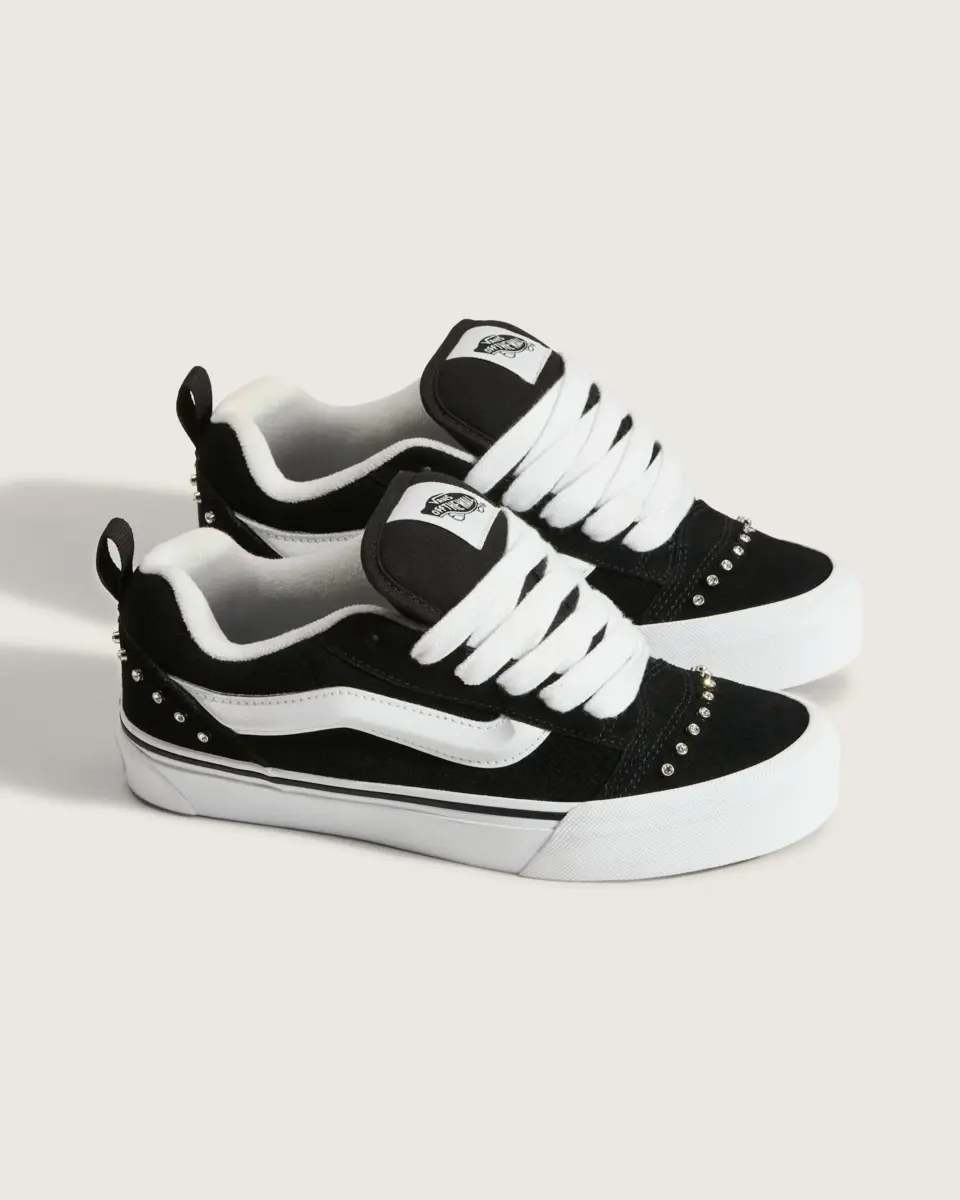 Née en 1998, la Knu Skool s’est inspirée de l’emblématique Old Skool pour créer quelque chose qui lui est entièrement propre. Des lacets surdimensionnés, une languette bouffante et un col moelleux reflétaient le style affirmé des années 90, le tout reposant sur la semelle vulcanisée emblématique de Vans.