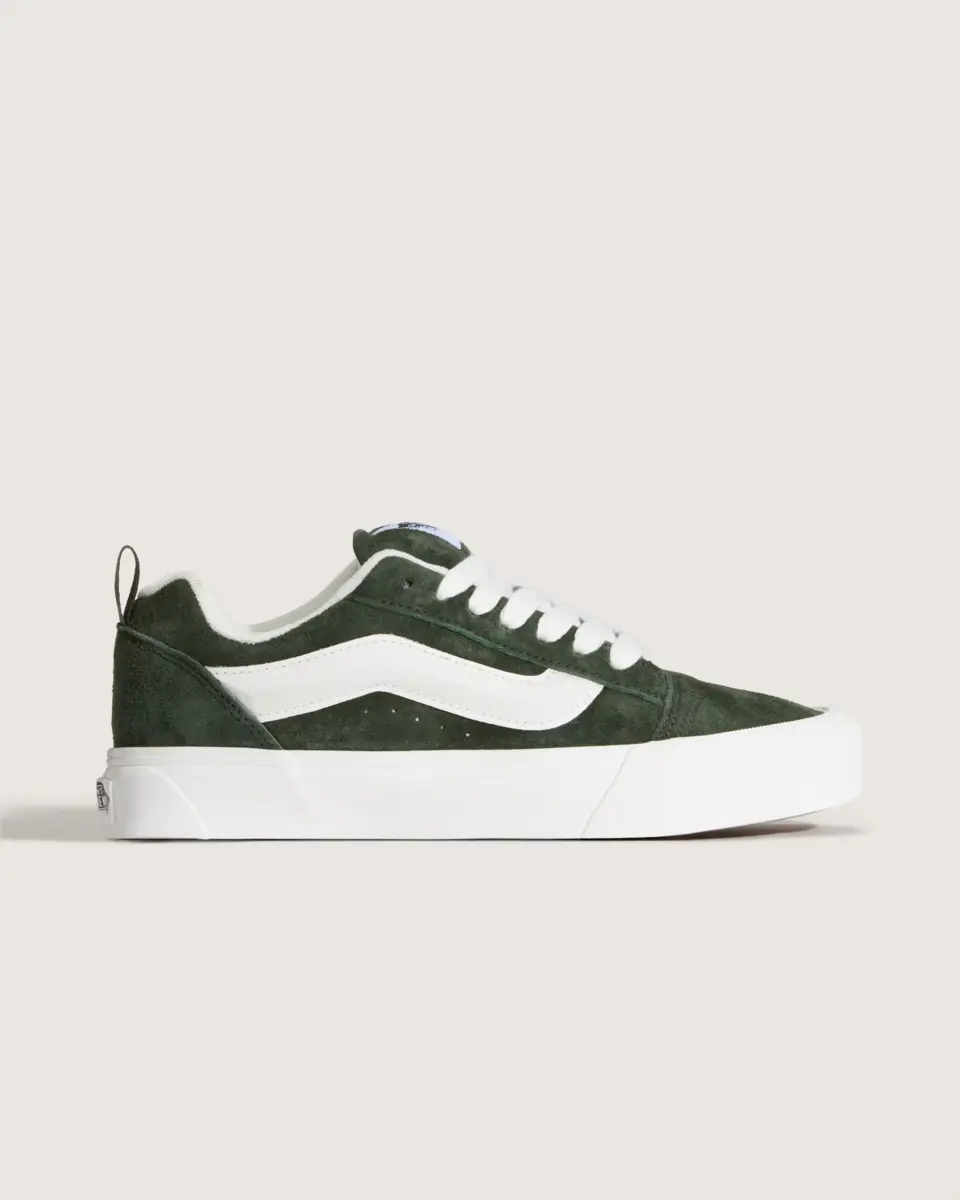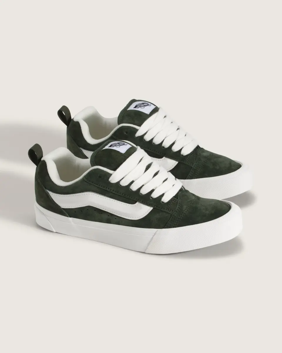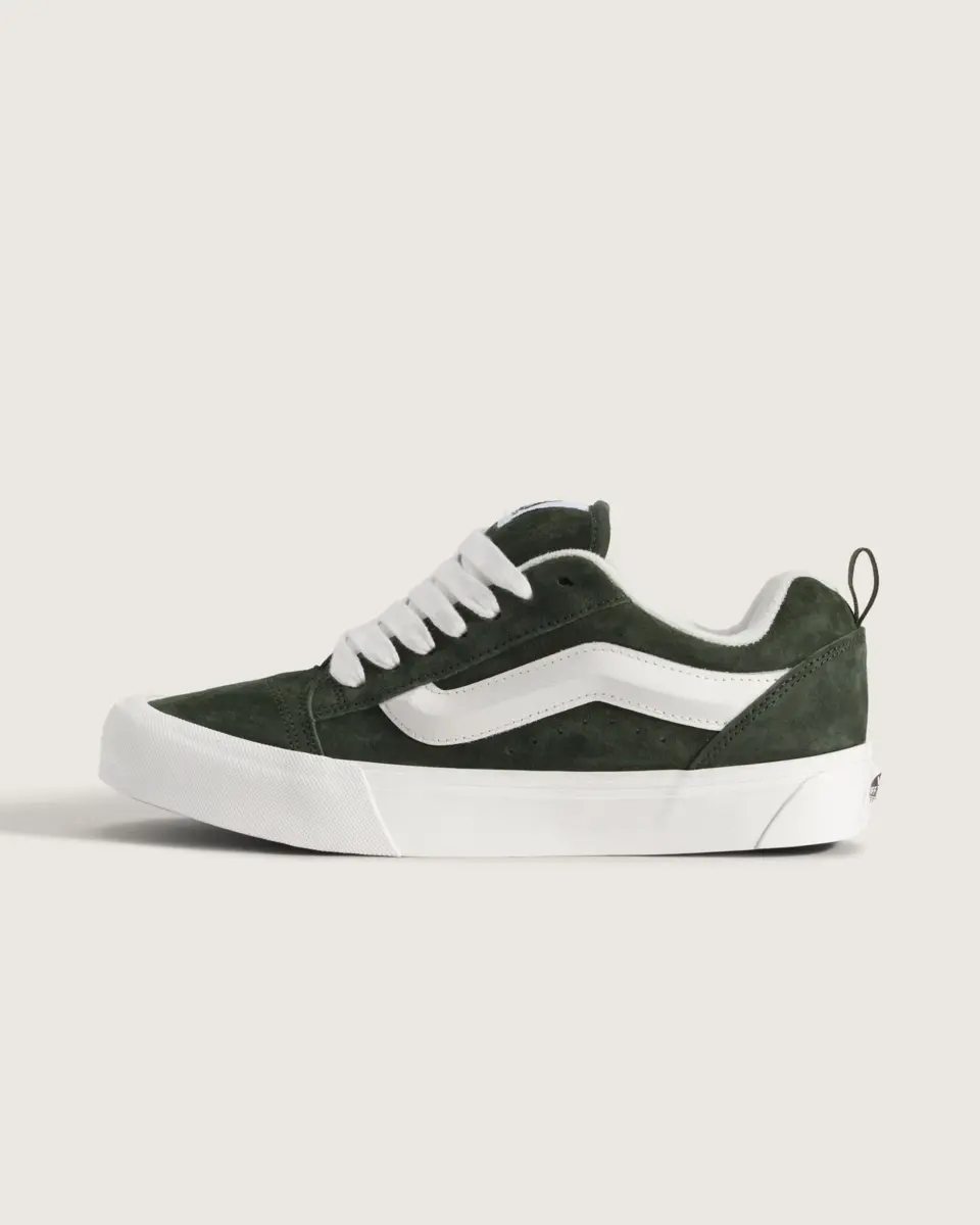 Née en 1998, la Knu Skool s’est inspirée de l’emblématique Old Skool pour créer quelque chose qui lui est entièrement propre. Des lacets surdimensionnés, une languette bouffante et un col moelleux reflétaient le style affirmé des années 90, le tout reposant sur la semelle vulcanisée emblématique de Vans.