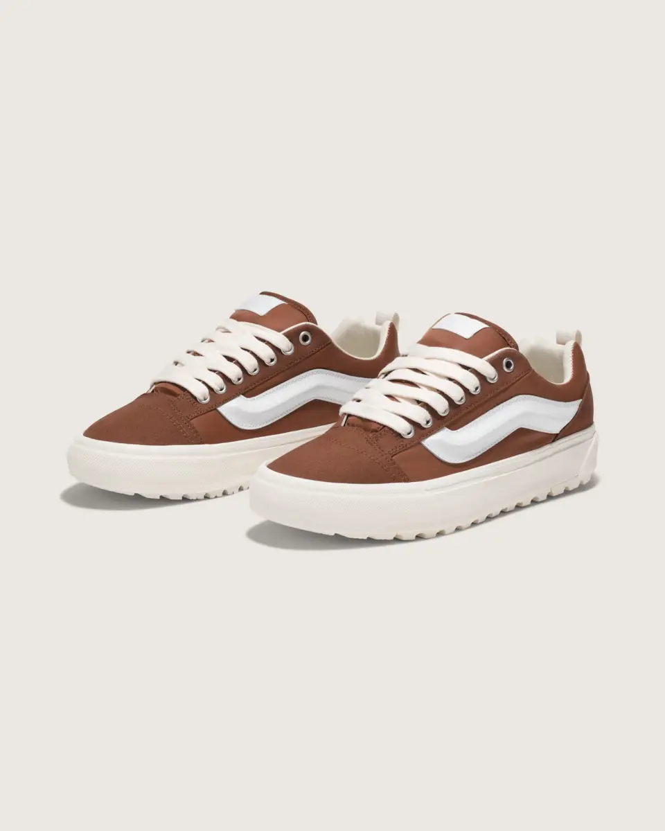 - La Knu Skool est une interprétation moderne d’un style classique des années 90, définie par sa languette gonflée et sa Sidestripe™ moulée en 3D, et nouée avec des lacets surdimensionnés et épais. Avec son profil percutant et ses détails de style spectaculaires, la Knu Skool s’inspire de l’Old Skool™ originale tout en mélangeant une icône du passé avec les tendances d’aujourd’hui.