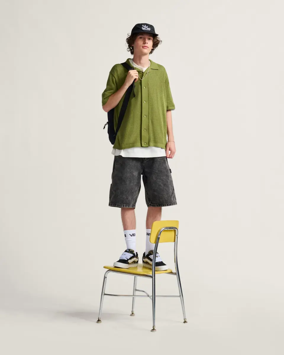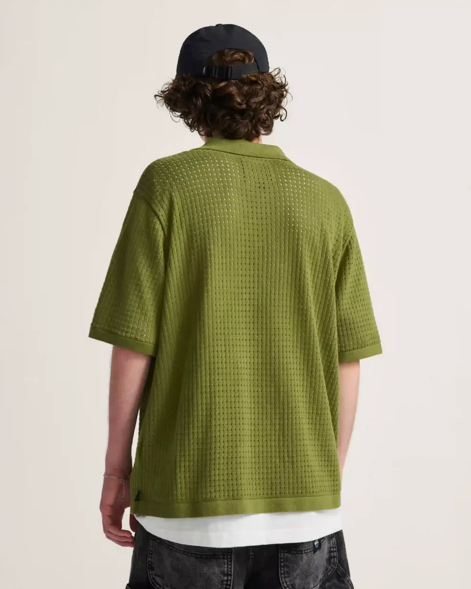 Relevez votre col avec le pull Feldman, un pull ample à manches courtes en tricot boutonné sur le devant, en coton respirant avec des détails en pointelle.