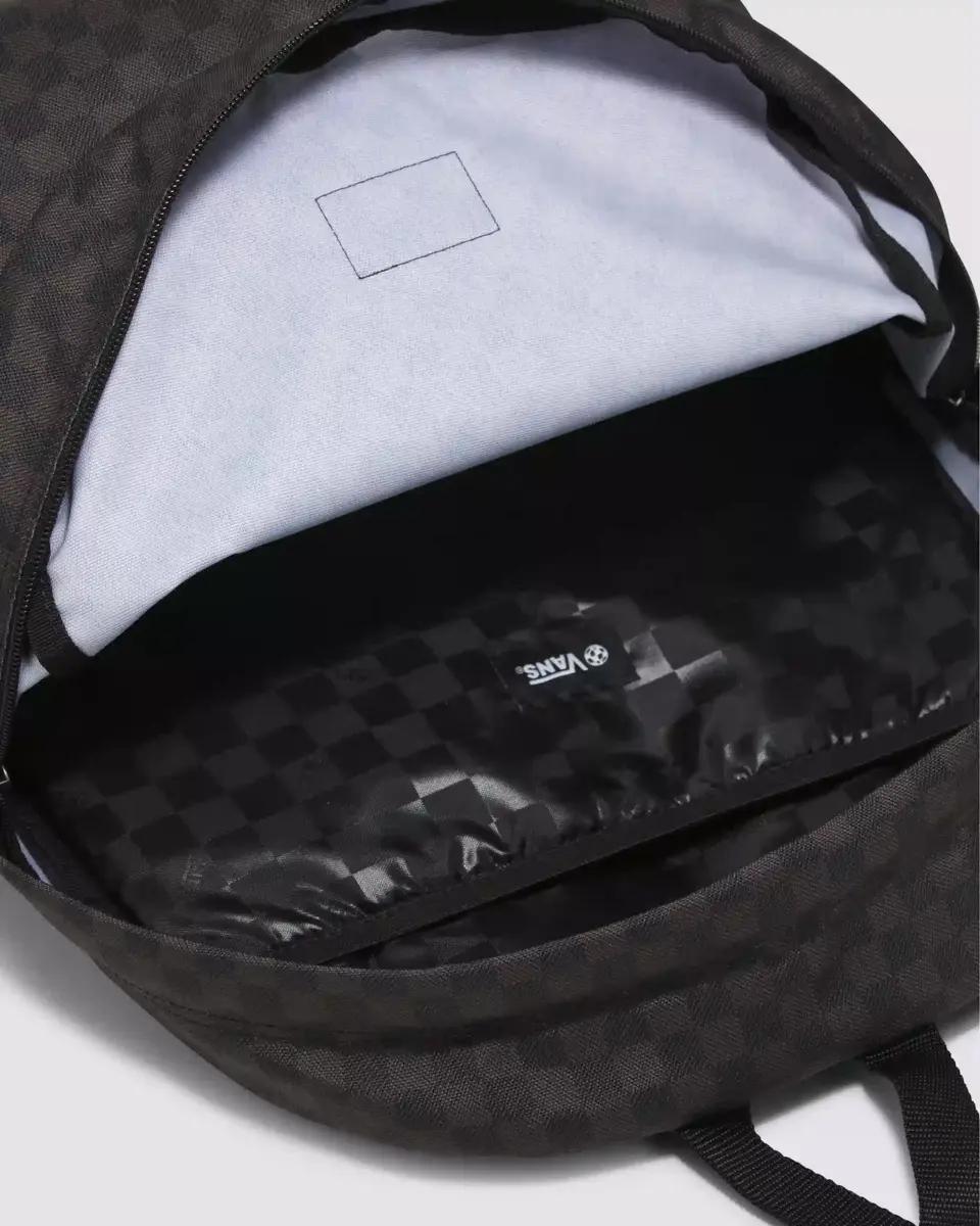 Une version en damier d’un essentiel Vans avec un confort rembourré et un rangement pour ordinateur portable.