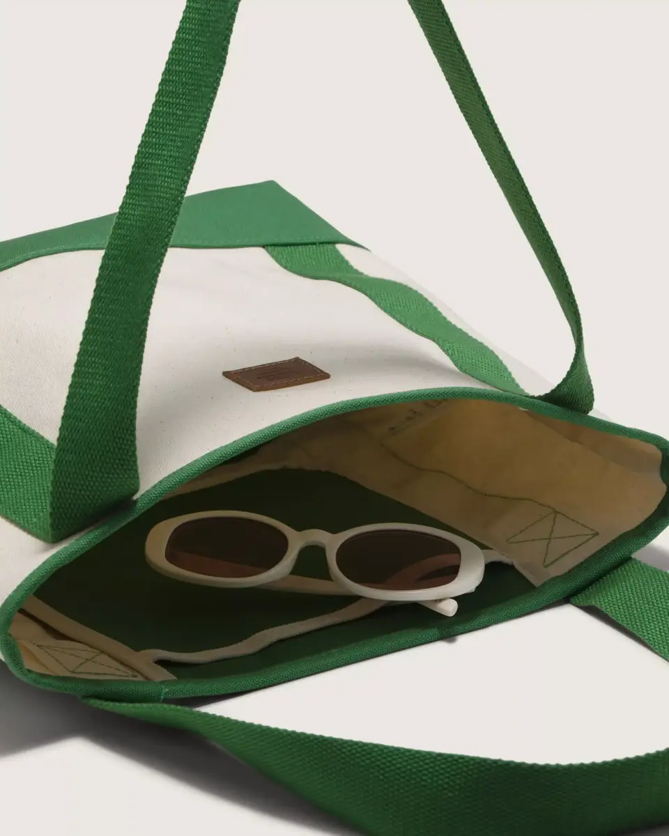 Le sac fourre-tout Pergs Midi est un incontournable pour ranger vos essentiels. Doté d’un compartiment principal pour ranger tous vos effets personnels et de poignées en toile, ce sac fourre-tout est une pièce printanière en beige et vert.