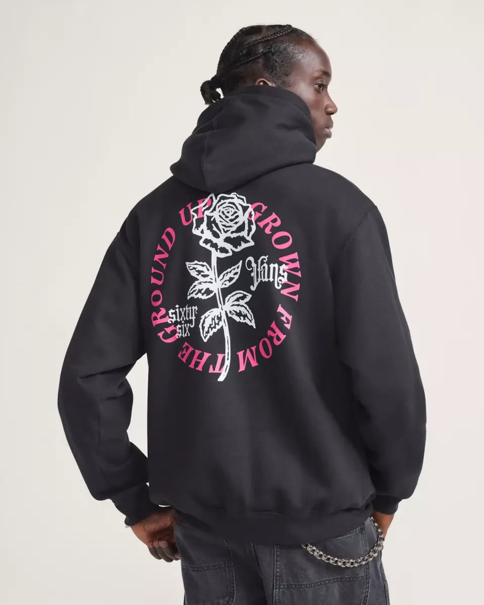 Le sweat à capuche Grown From The Ground Up offre un design simple et décontracté avec un intérieur brossé doux pour plus de confort et de chaleur. La sérigraphie présente un logo Vans inscriptible et durable sur le devant, surmonté d’une rose. C’est la pièce idéale à superposer avec style.