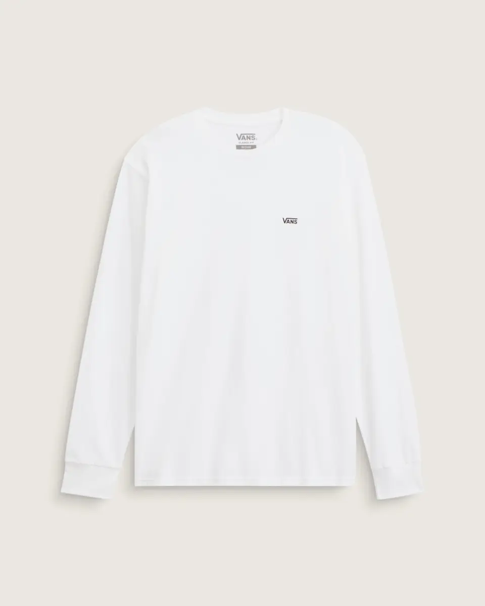 Le t-shirt à manches longues Left Chest Hit est un t-shirt à col rond à manches longues en coton épais avec le logo Vans classique imprimé sur le devant gauche de la poitrine.