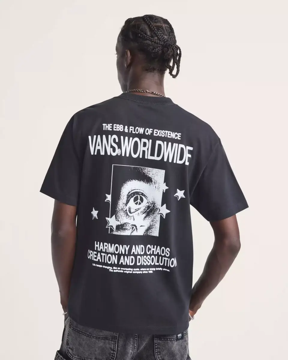 Le flux et le reflux de l’existence sont traités par Vans dans un t-shirt classique à manches courtes.