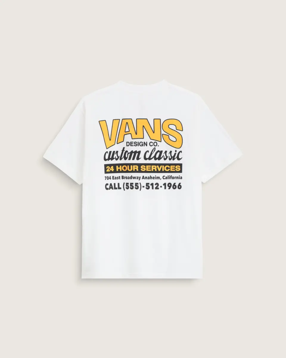 Portez un morceau de l’histoire de Vans avec le t-shirt Shop Front, qui rend hommage à la première usine de l’entreprise. Ce t-shirt classique à manches courtes et col ras du cou présente un logo Vans® sérigraphié sur le devant, et une publicité rétro de l’usine au dos.