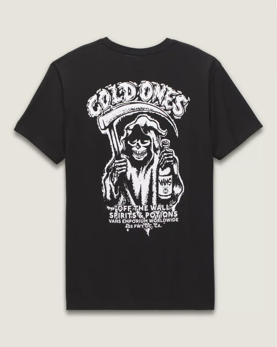 Le t-shirt Skull Reaper Spirit World est un t-shirt classique à manches courtes et col ras du cou avec un graphisme sérigraphié du logo Vans® sur la poitrine gauche et de la grande faucheuse avec un rhume dans le dos.