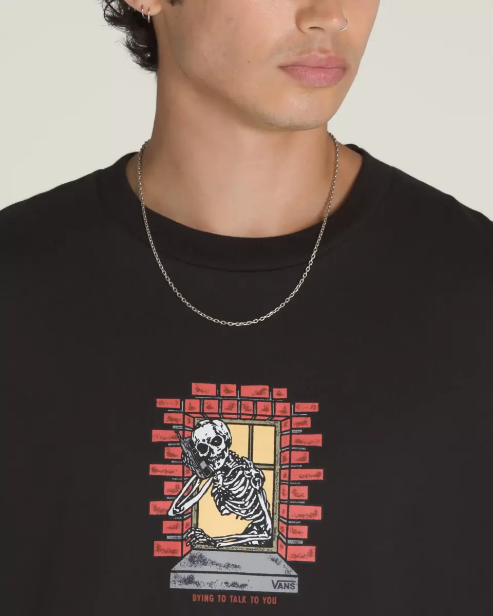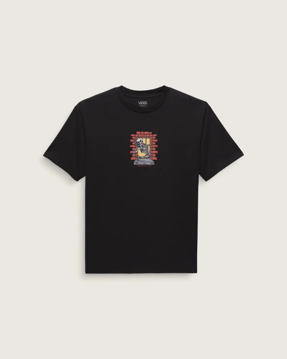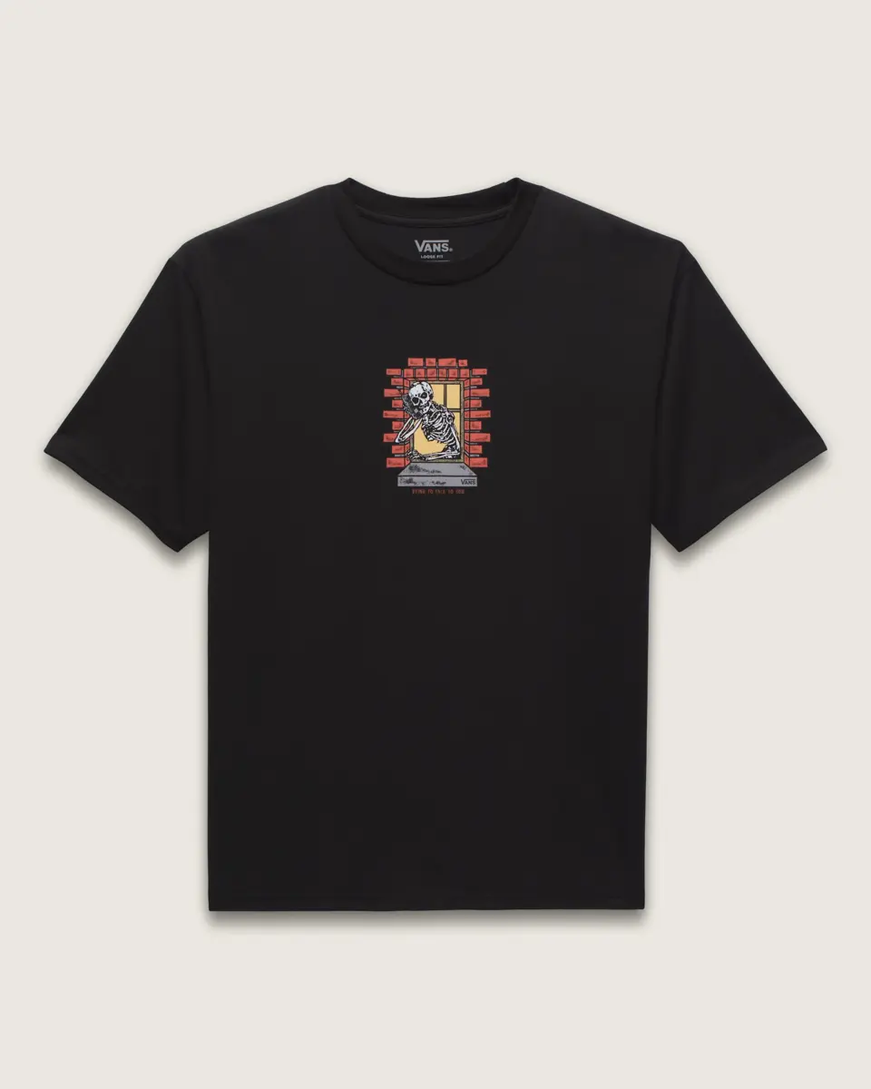 Regardez le t-shirt Skull Reaper Window, un t-shirt ample à manches courtes et col ras du cou avec un motif sérigraphié d’un squelette penché par la fenêtre.