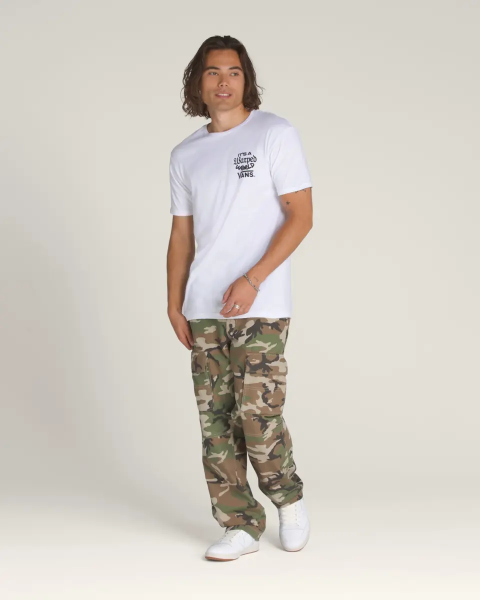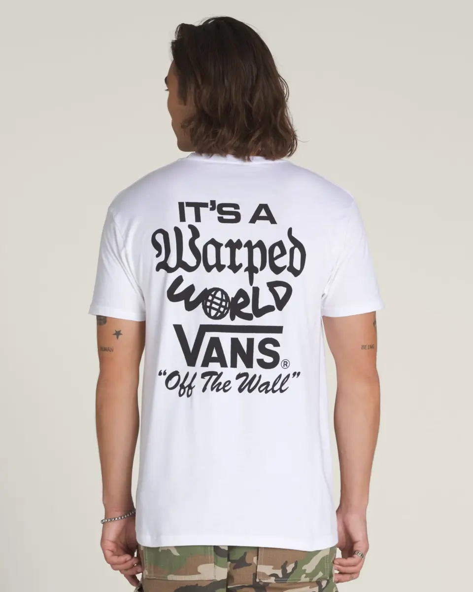 Adoptez une vue d’ensemble avec le t-shirt Warped World, un t-shirt à manches courtes et col ras du cou de coupe classique avec un graphisme sérigraphié du logo Vans® sur le devant et un graphisme marquant dans le dos.