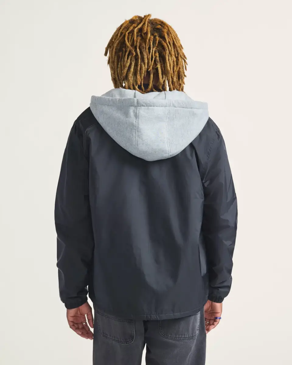 La veste d’entraîneur à capuche Riley revisite une silhouette intemporelle avec une capuche et un corps doublés polaire pour plus de chaleur. Fabriquée en nylon imperméable, cette couche légère est conçue pour bloquer le vent et les intempéries sans être encombrante.