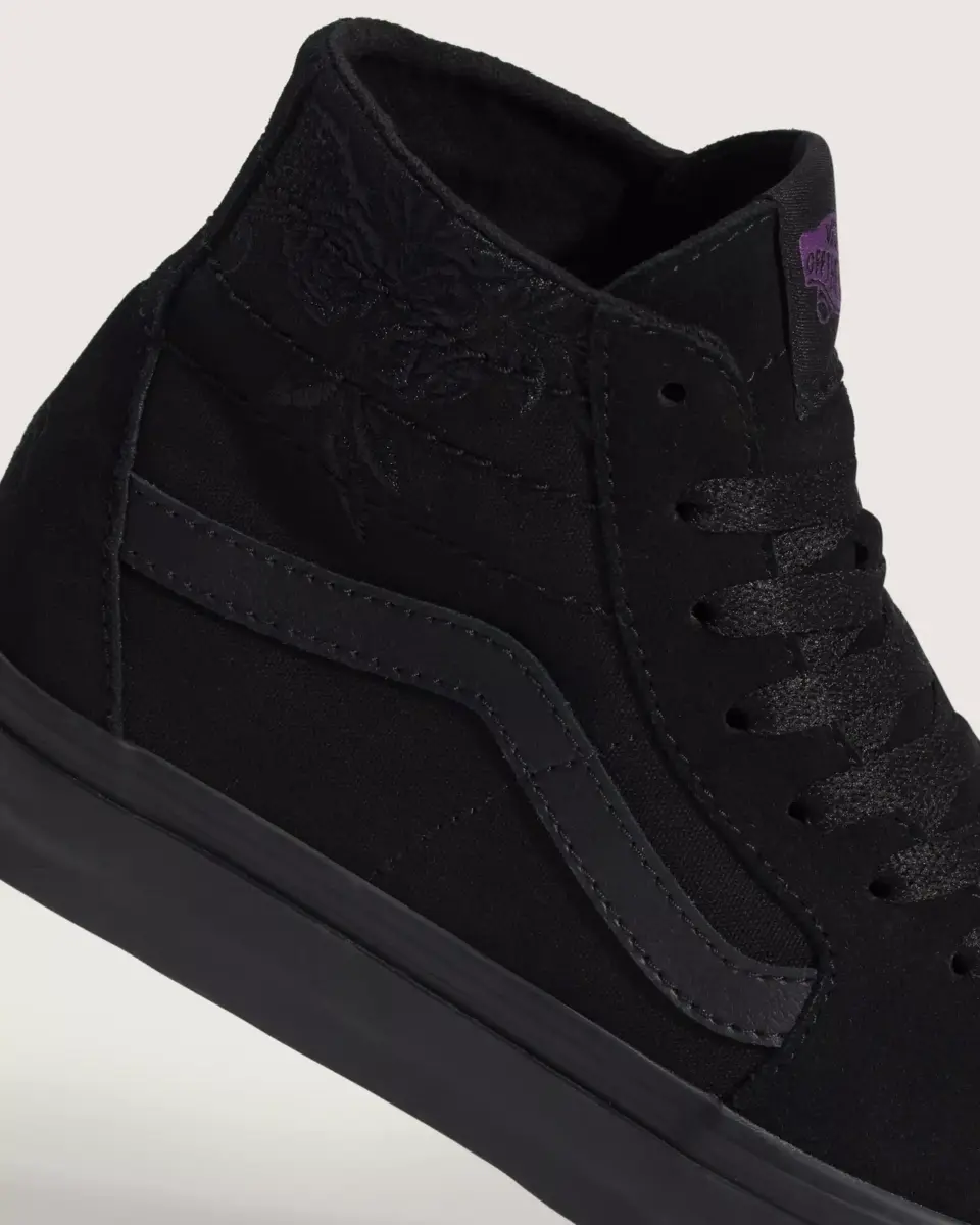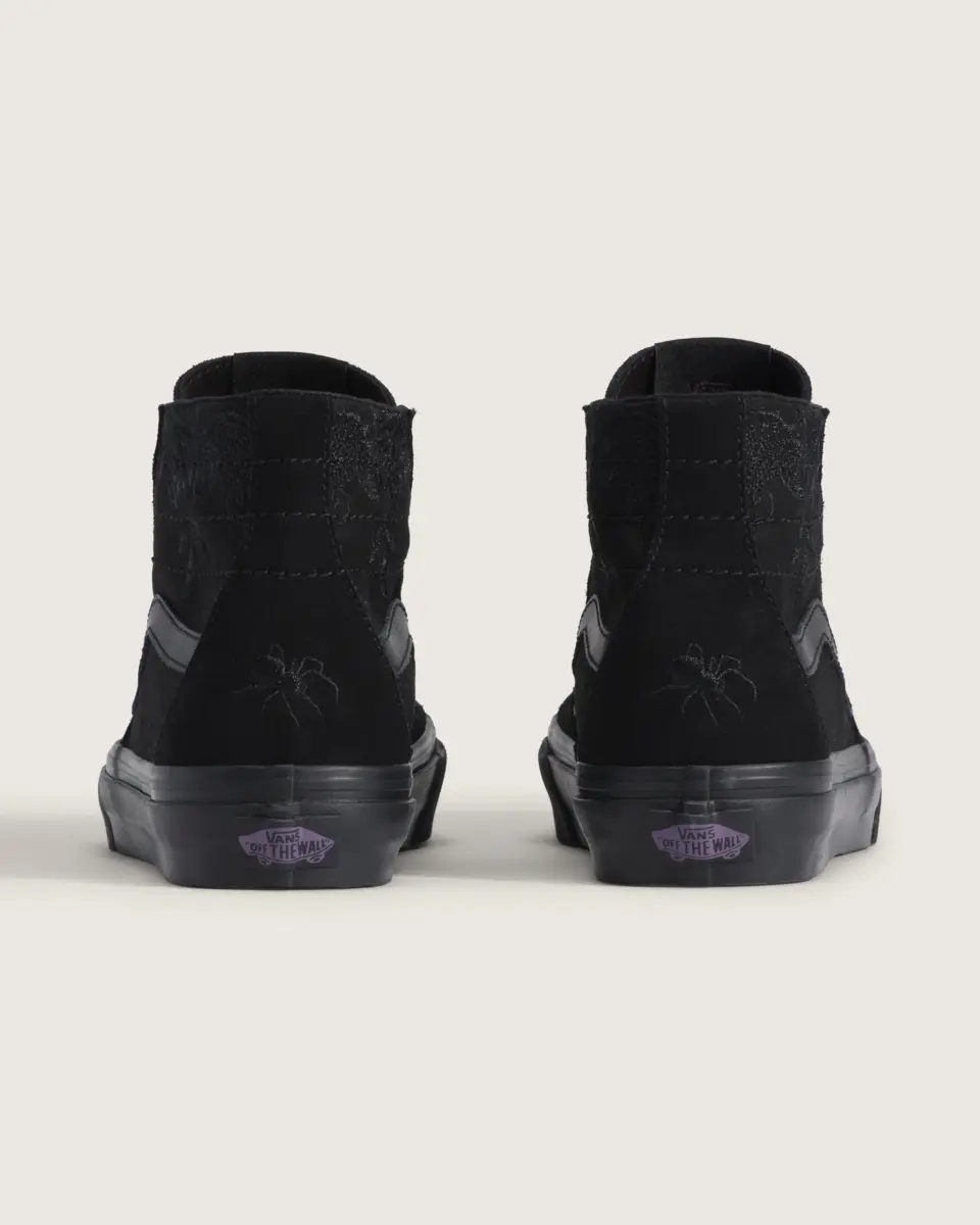 Une Sk8-Hi affinée avec une broderie ton sur ton et des détails d’araignée occultants.